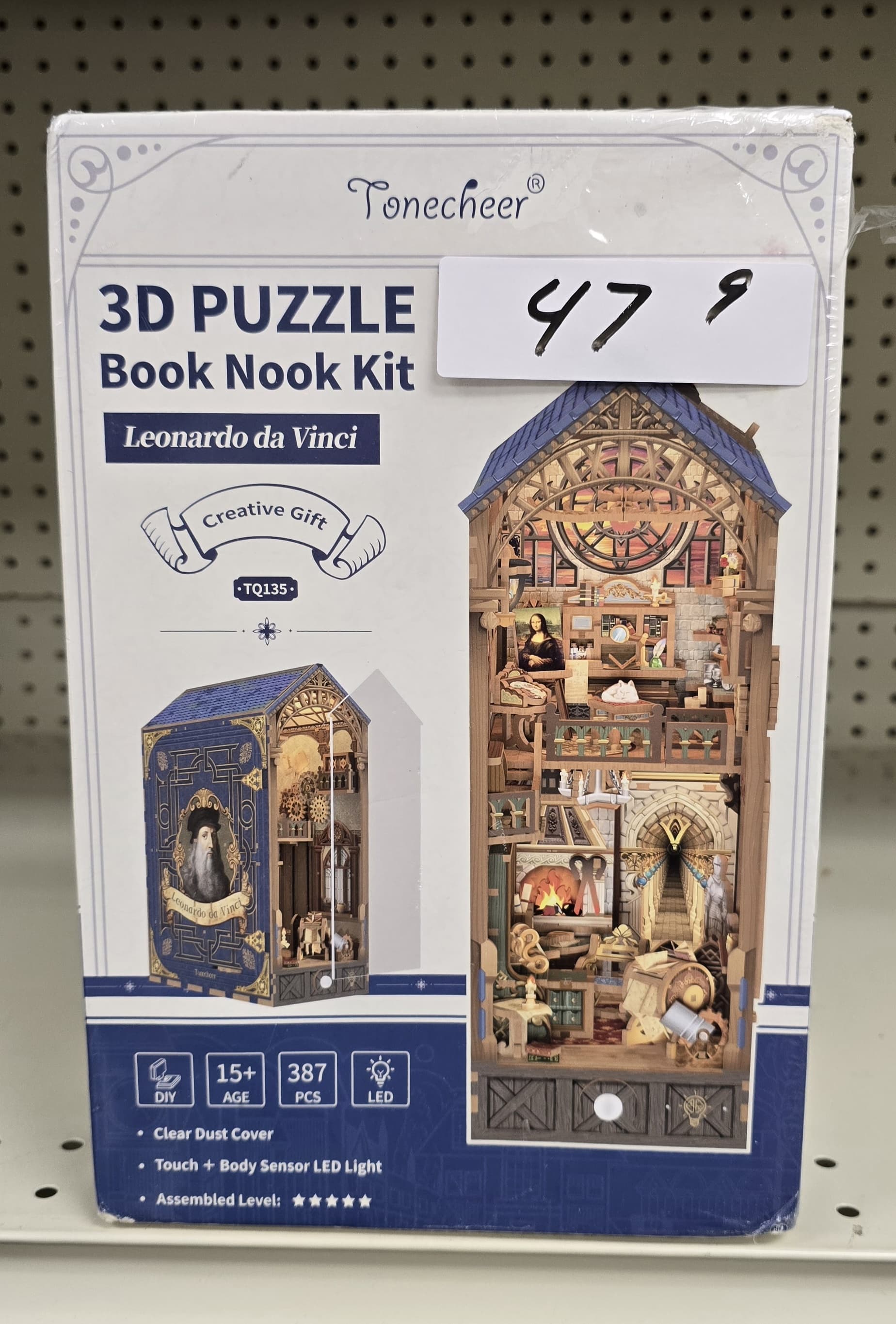 Tonecheer DIY Book Nook Kit for Adults, 3D Puzzle Wooden Miniature House Kit, Booknook Dollhouse Bookshelf Insert Decor Bookend with Dust Cover and LED Lights Gifts (Leonardo da Vinci). 47