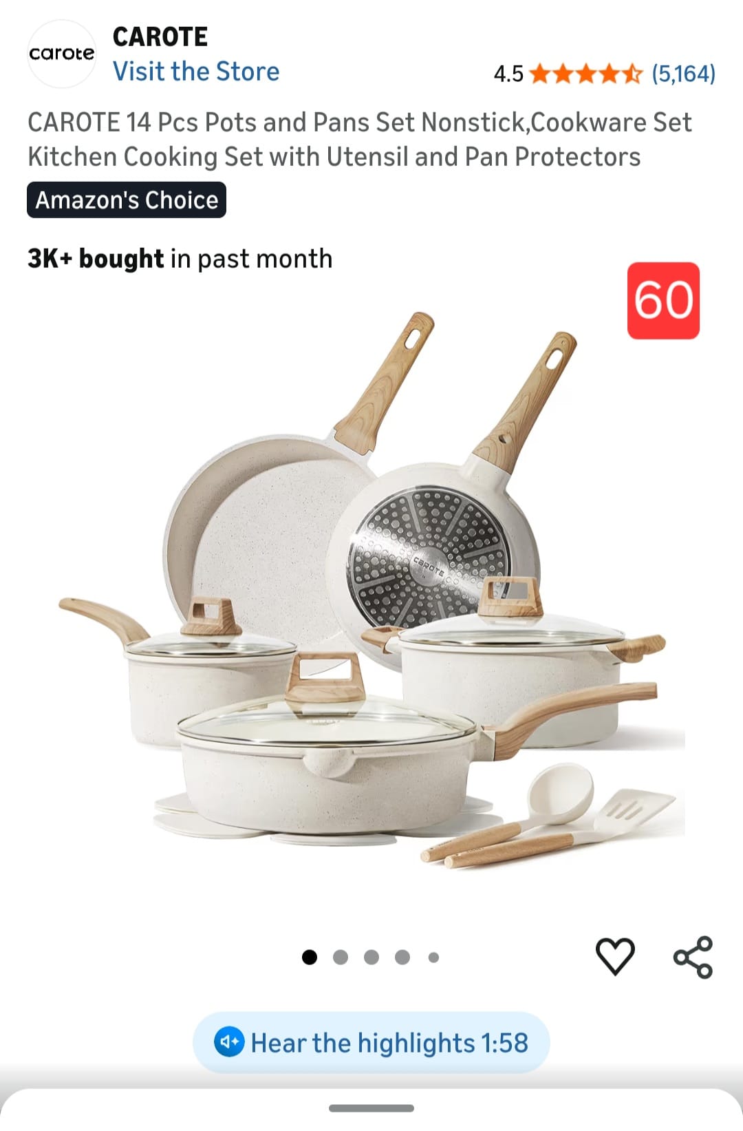 CAROTE 14 Pcs Pots and Pans Set Nonstick, Cookware Set Kitchen Cooking Set with Utensil and Pan Protectors. 60