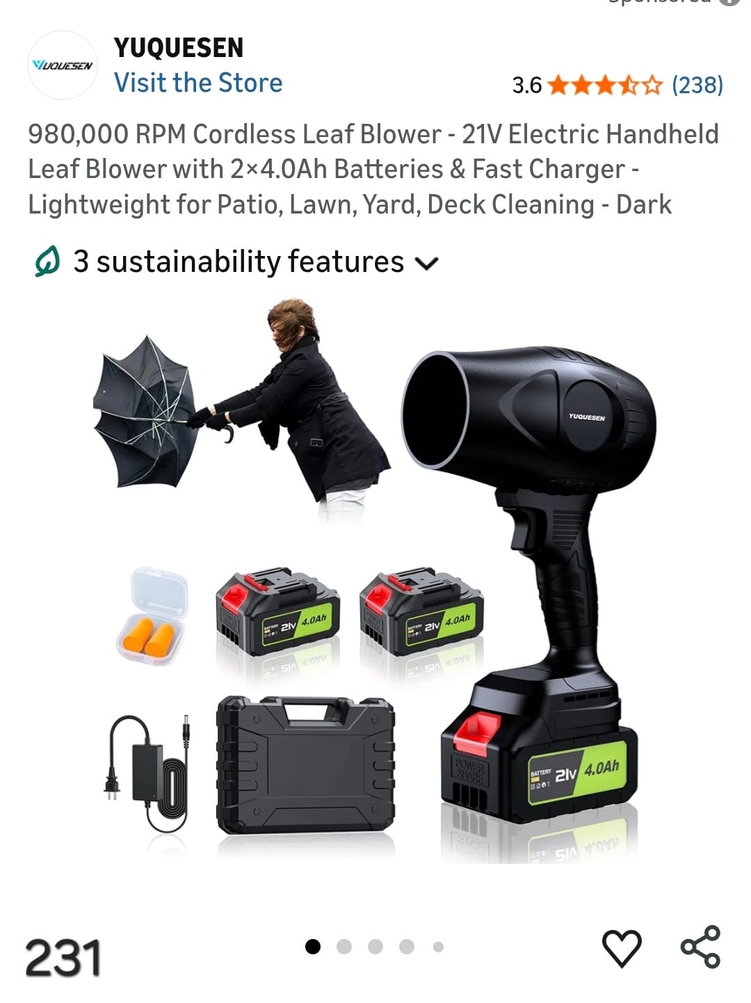 980,000 RPM Cordless Leaf Blower - 21V Electric Handheld Leaf Blower with 2x4.0Ah Batteries & Fast Charger -Lightweight for Patio, Lawn, Yard, Deck Cleaning - Dark. Lv231