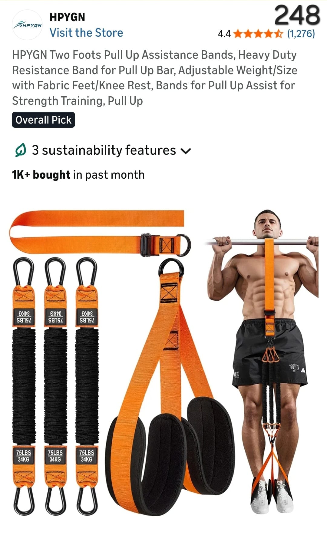 HPYGN Two Foots Pull Up Assistance Bands, Heavy Duty Resistance Band for Pull Up Bar, Adjustable Weight/Size with Fabric Feet/Knee Rest, Bands for Pull Up Assist for Strength Training, Pull Up. Lv248
