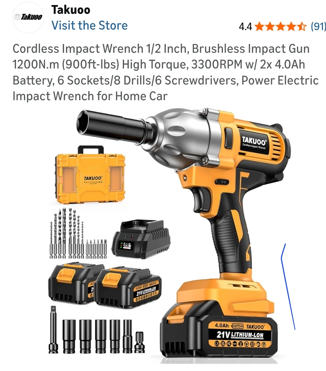 Cordless Impact Wrench 1/2 Inch, Brushless Impact Gun 1200N.m (900ft-lbs) High Torque, 3300RPM w/ 2x 4.0Ah Battery, 6 Sockets/8 Drills/6 Screwdrivers, Power Electric Impact Wrench for Home Car. Lv259