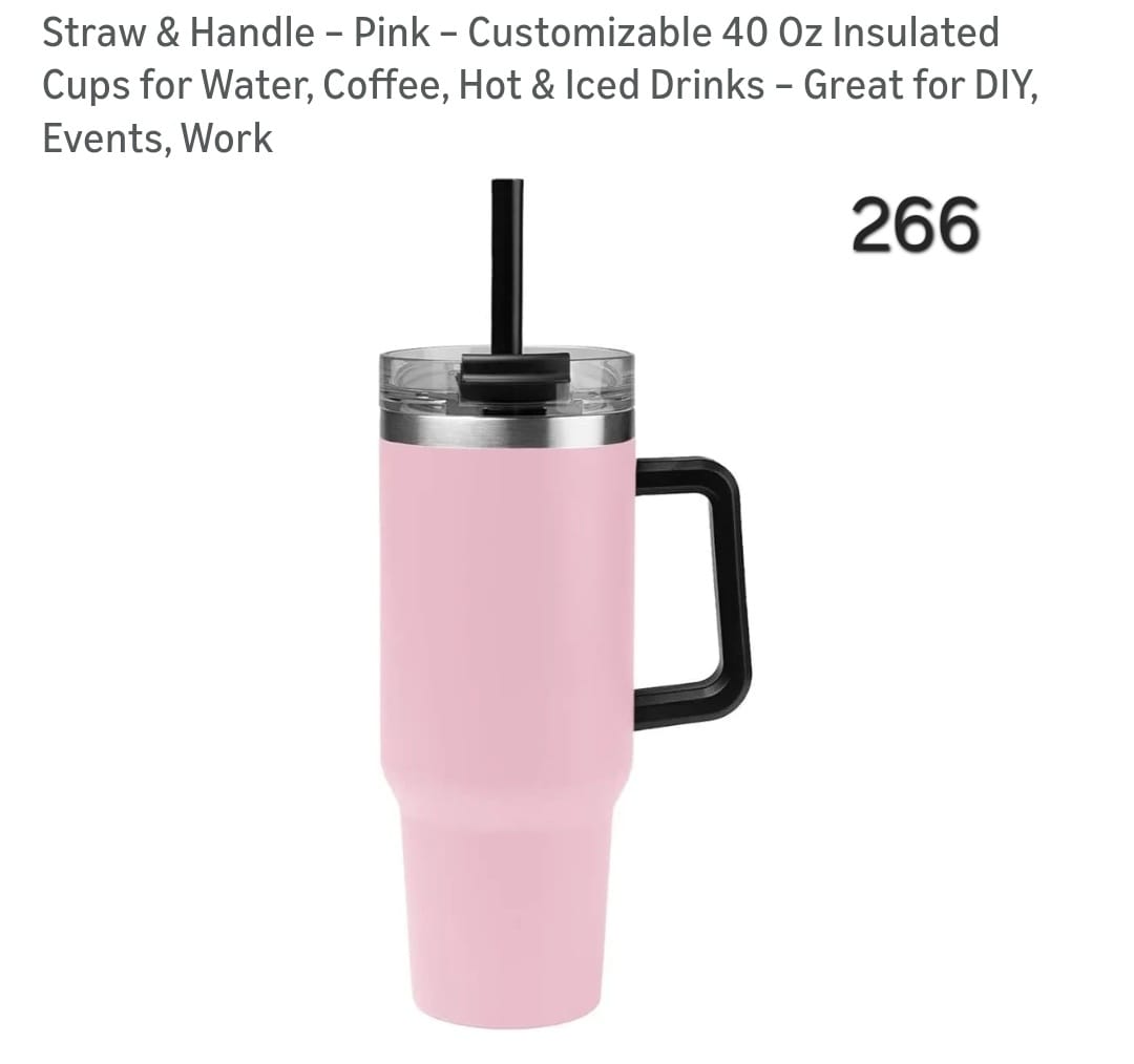 Straw & Handle - Pink - Customizable 40 Oz Insulated Cups for Water, Coffee, Hot & Iced Drinks - Great for DIY, Events, Work. Lv266