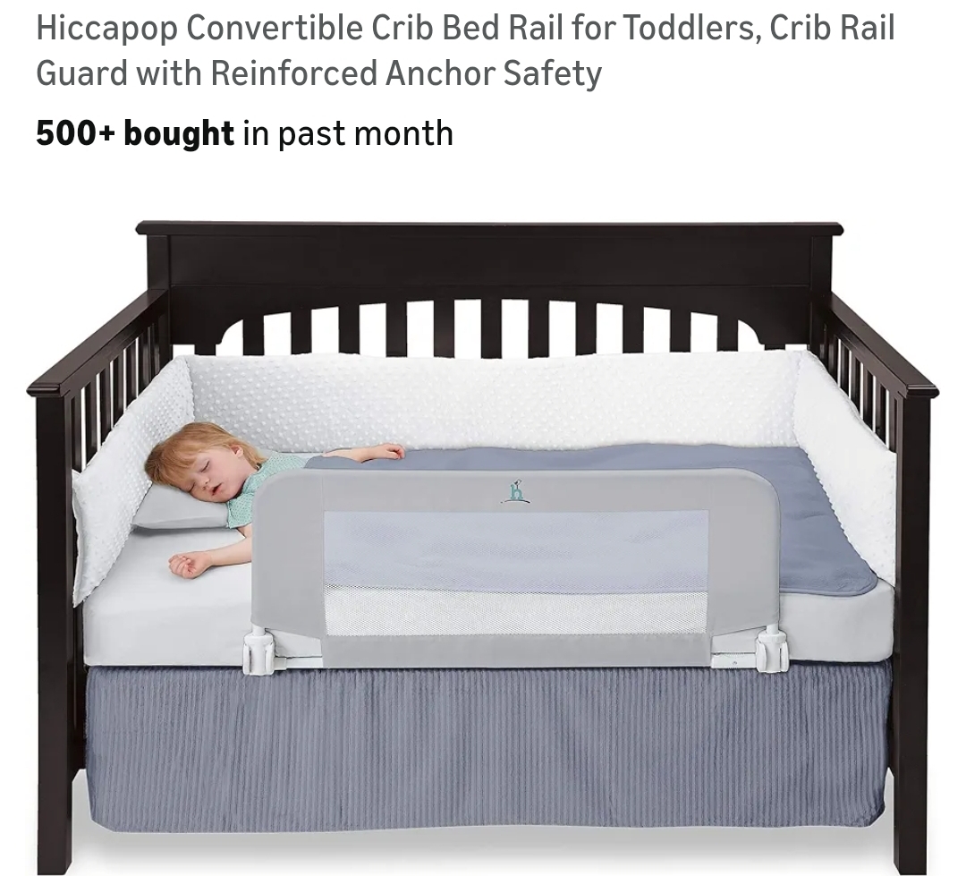 Hiccapop Convertible Crib Bed Rail for Toddlers, Crib Rail Guard with Reinforced Anchor Safety. Lv267