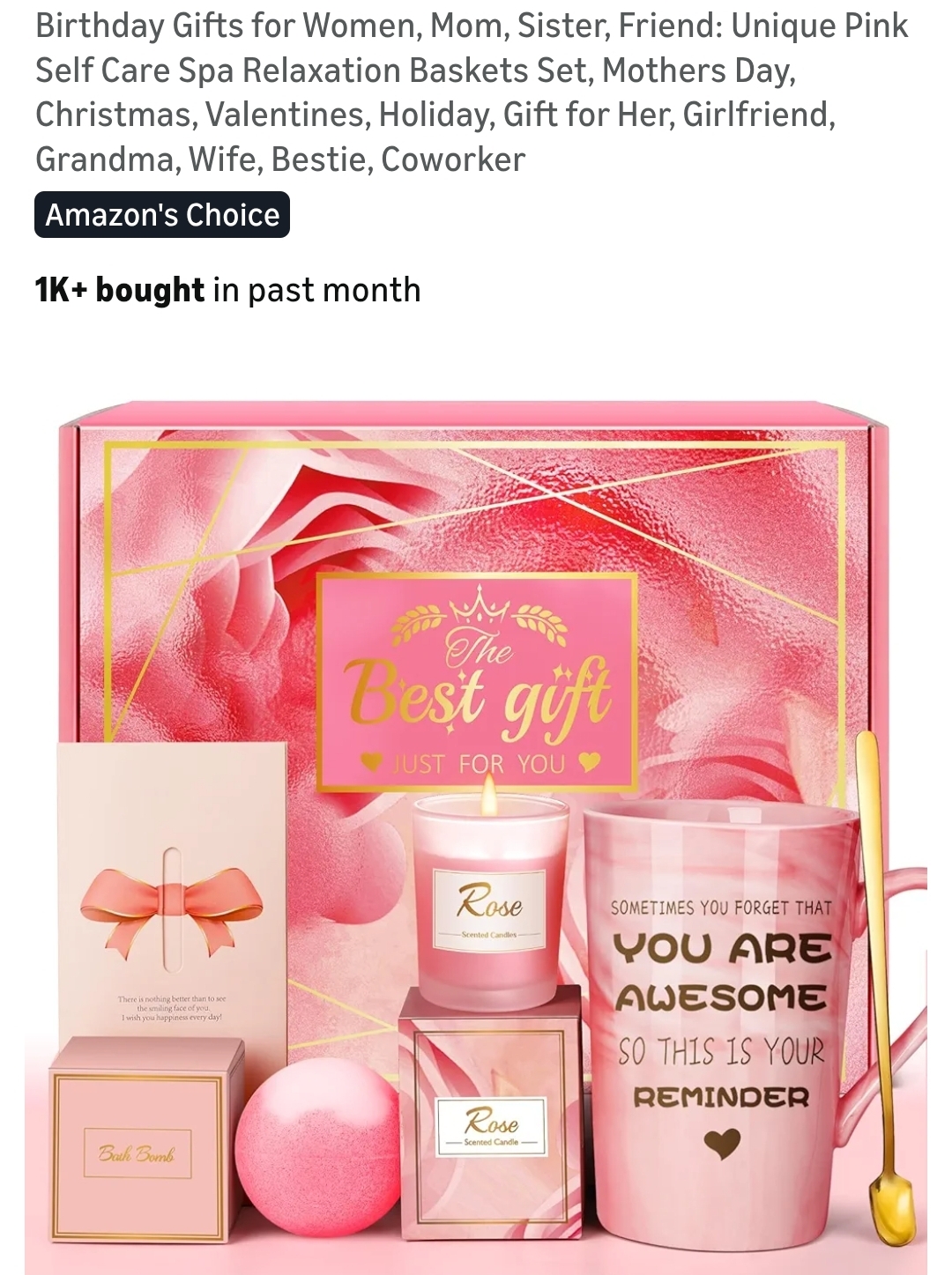 Birthday Gifts for Women, Mom, Sister, Friend: Unique Pink Self Care Spa Relaxation Baskets Set. Lv273