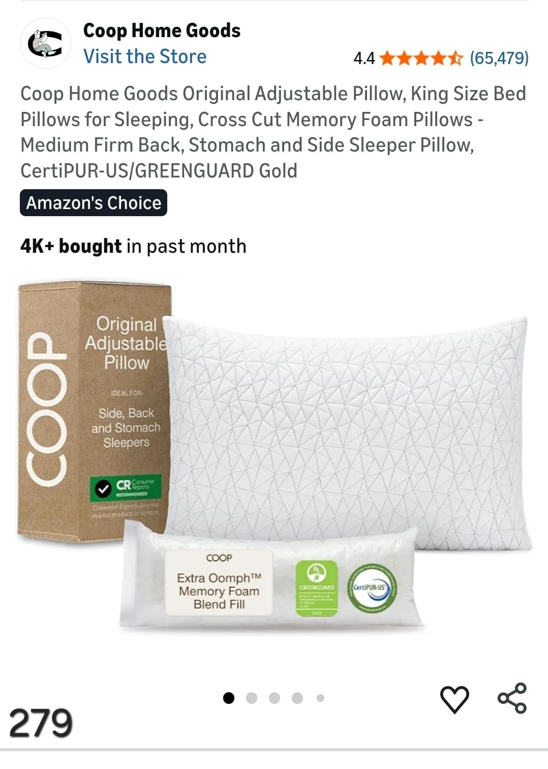 Coop Home Goods Original Adjustable Pillow, King Size Bed Pillows for Sleeping. Lv279