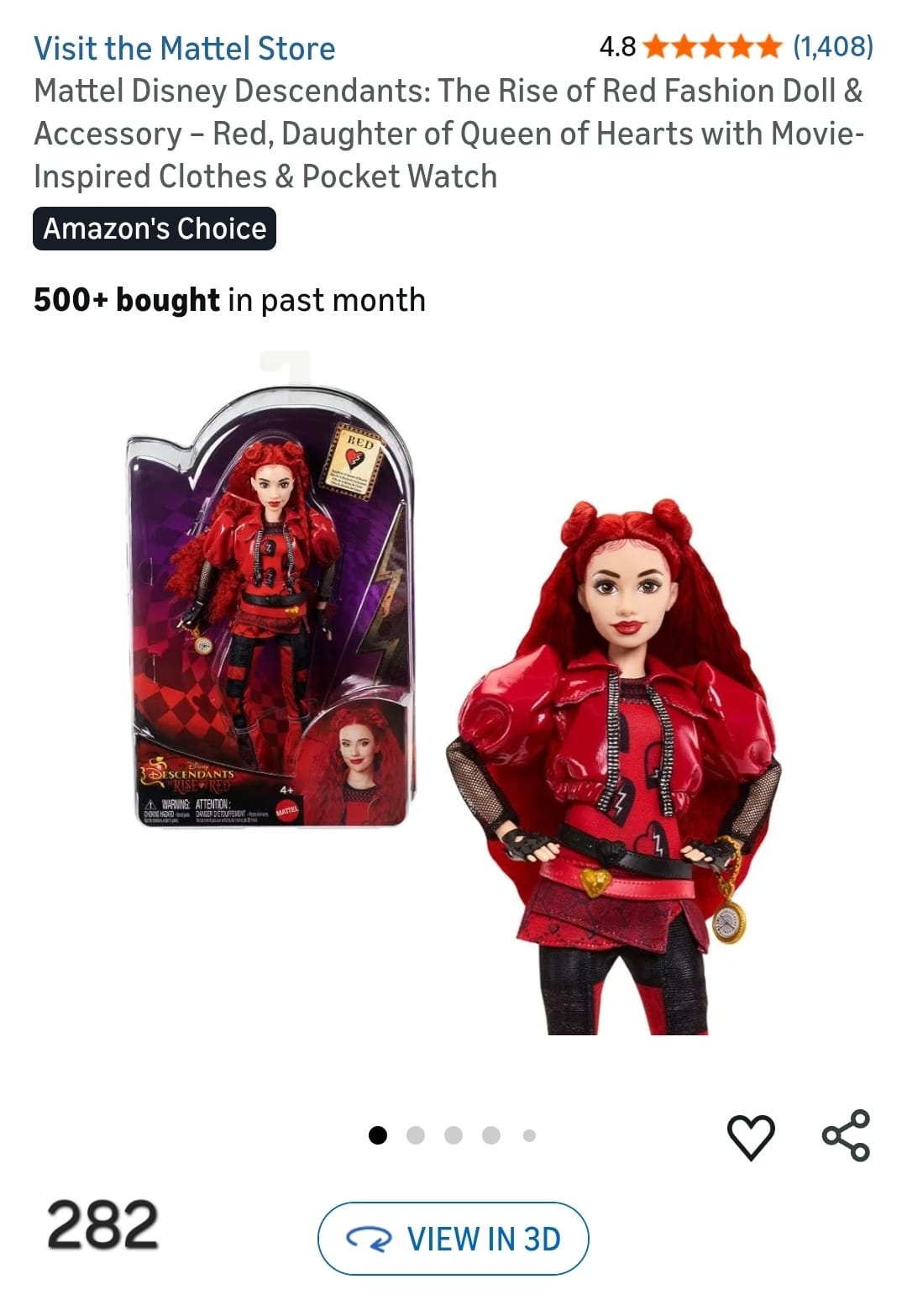 Mattel Disney Descendants: The Rise of Red Fashion Doll & Accessory - Red, Daughter of Queen of Hearts with Movie-Inspired Clothes & Pocket Watch. Lv282