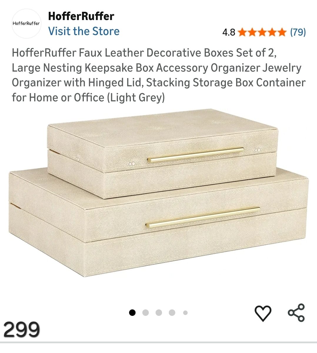 HofferRuffer Faux Leather Decorative Boxes Set of 2. Lv299