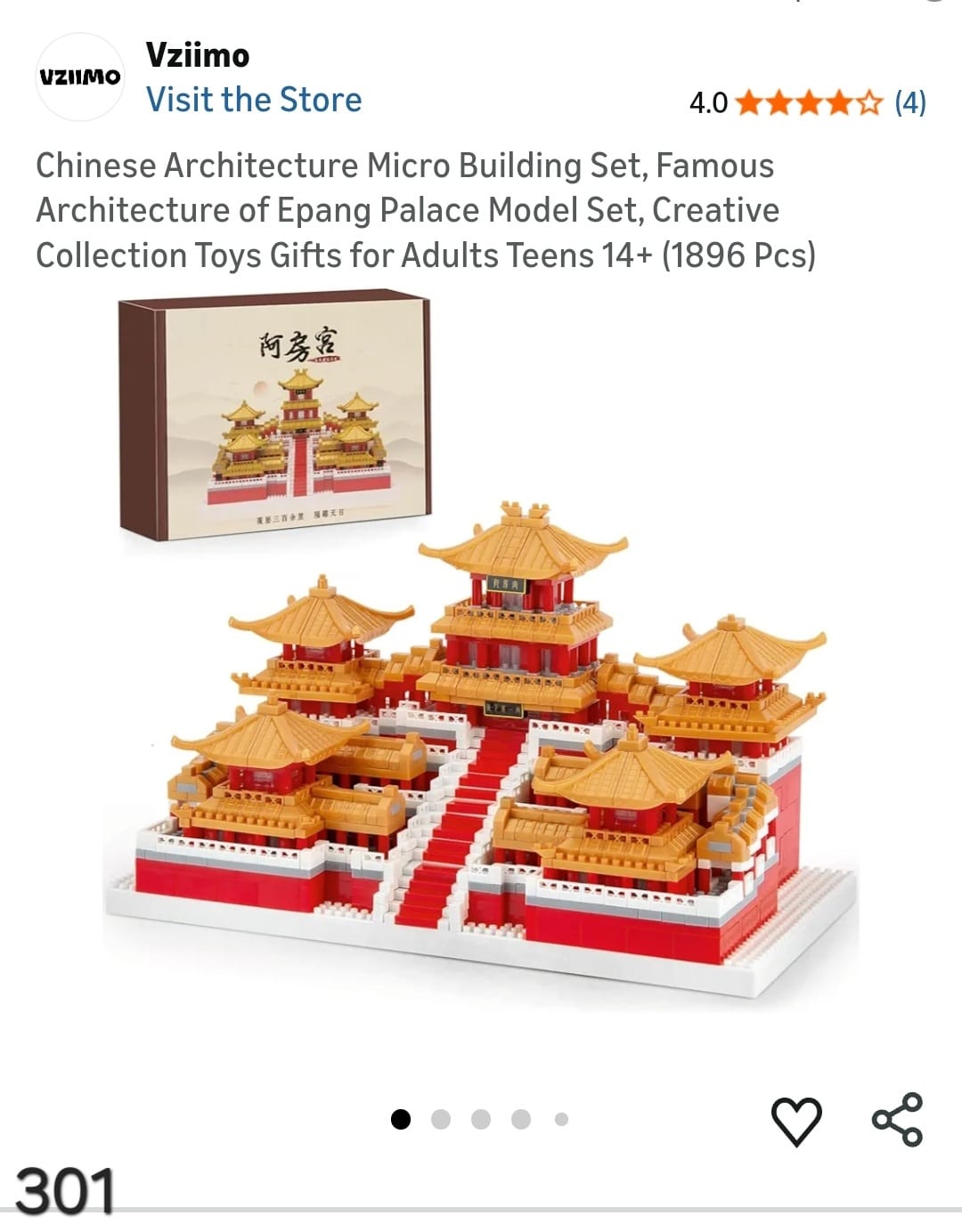 Chinese Architecture Micro Building Set, Famous Architecture of Epang Palace Model Set, Creative Collection Toys Gifts for Adults Teens 14+ (1896 Pcs). Lv301