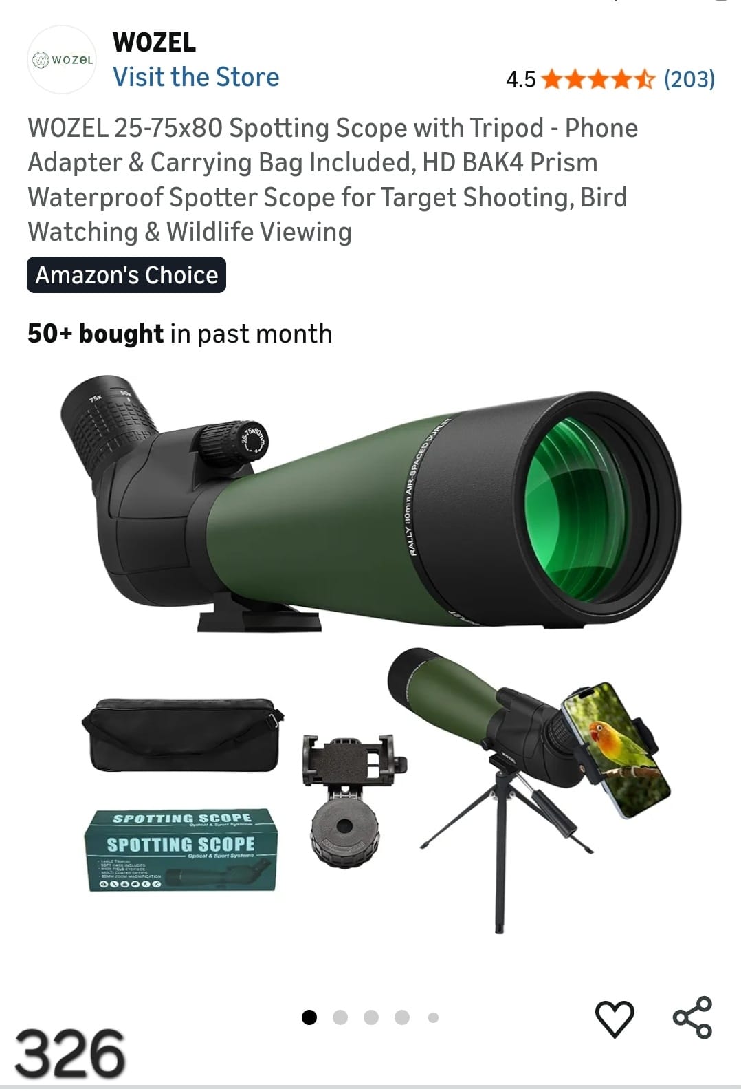 WOZEL 25-75x80 Spotting Scope with Tripod - Phone Adapter & Carrying Bag Included, HD BAK4 Prism Waterproof Spotter Scope for Target Shooting, Bird Watching & Wildlife Viewing. Lv326
