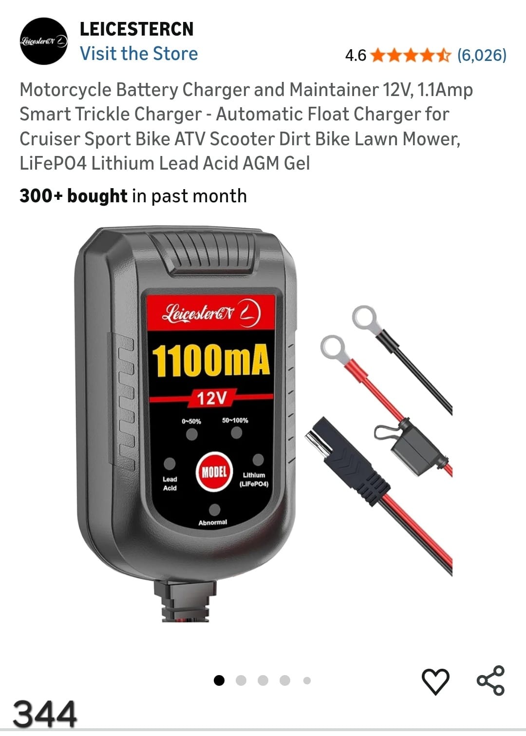 Motorcycle Battery Charger and Maintainer 12V. Lv344