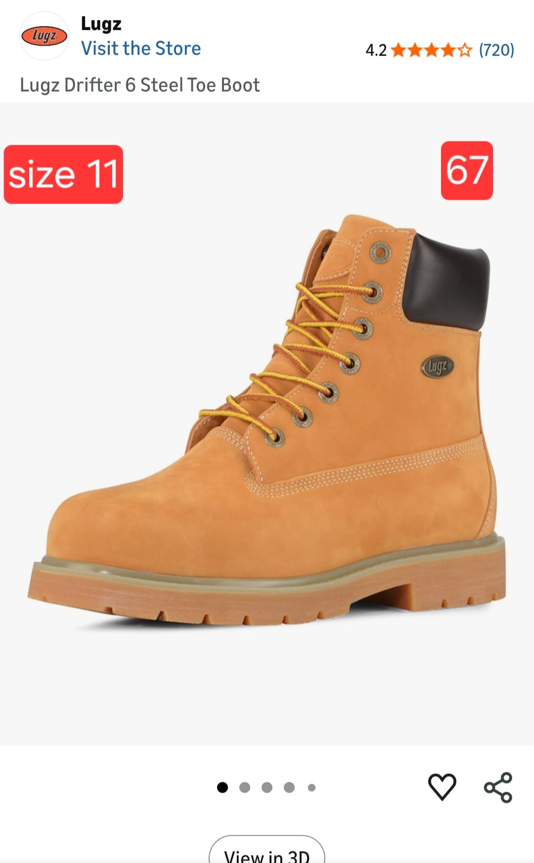 Lugz Drifter 6 Steel Toe Boot size 11. 67