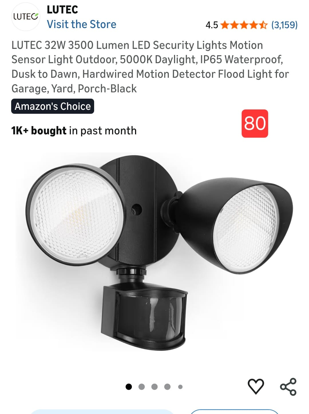 LUTEC 32W 3500 Lumen LED Security Lights Motion Sensor Light Outdoor, 5000K Daylight, IP65 Waterproof, Dusk to Dawn, Hardwired Motion Detector Flood Light for Garage, Yard, Porch-Black. 80
