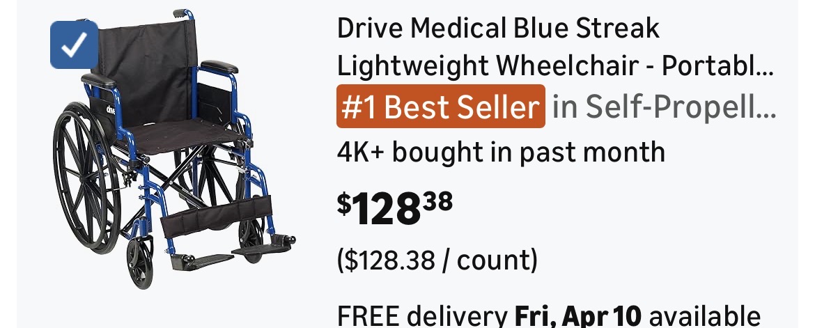 Drive Medical Blue Streak Lightweight Wheelchair #H302