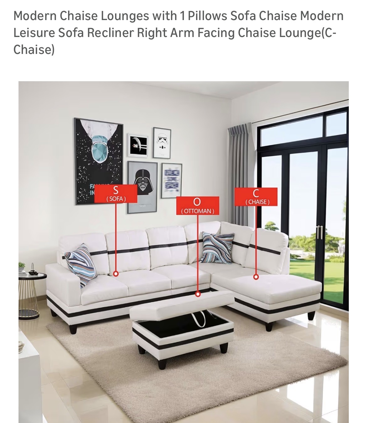 Modern Chaise Lounges with 1 Pillows Sofa Chaise Modern #H311
