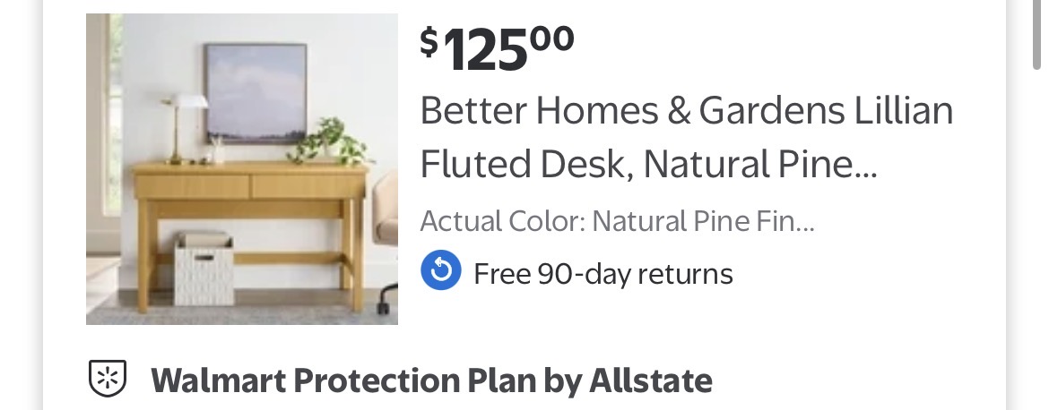 Better Homes & Gardens Lillian Fluted Desk, Natural Pine Finish #H318