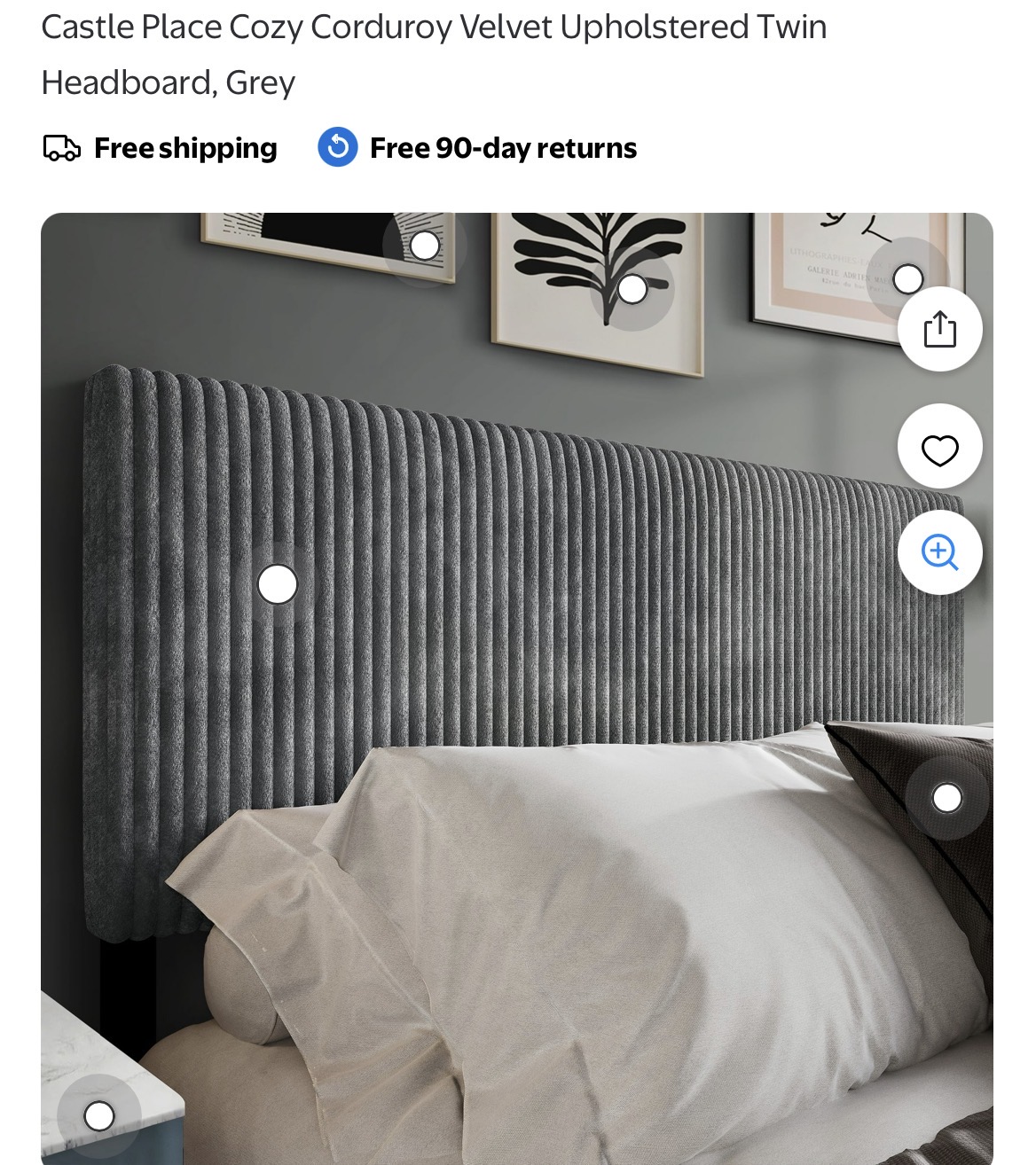 Castle Place Cozy Corduroy Velvet Upholstered Twin Headboard, Grey #H321