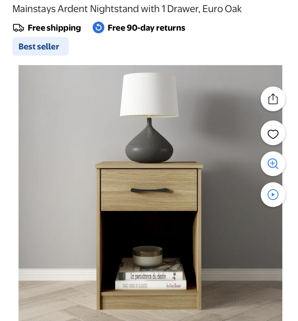Mainstays Ardent Nightstand with 1 Drawer #D94