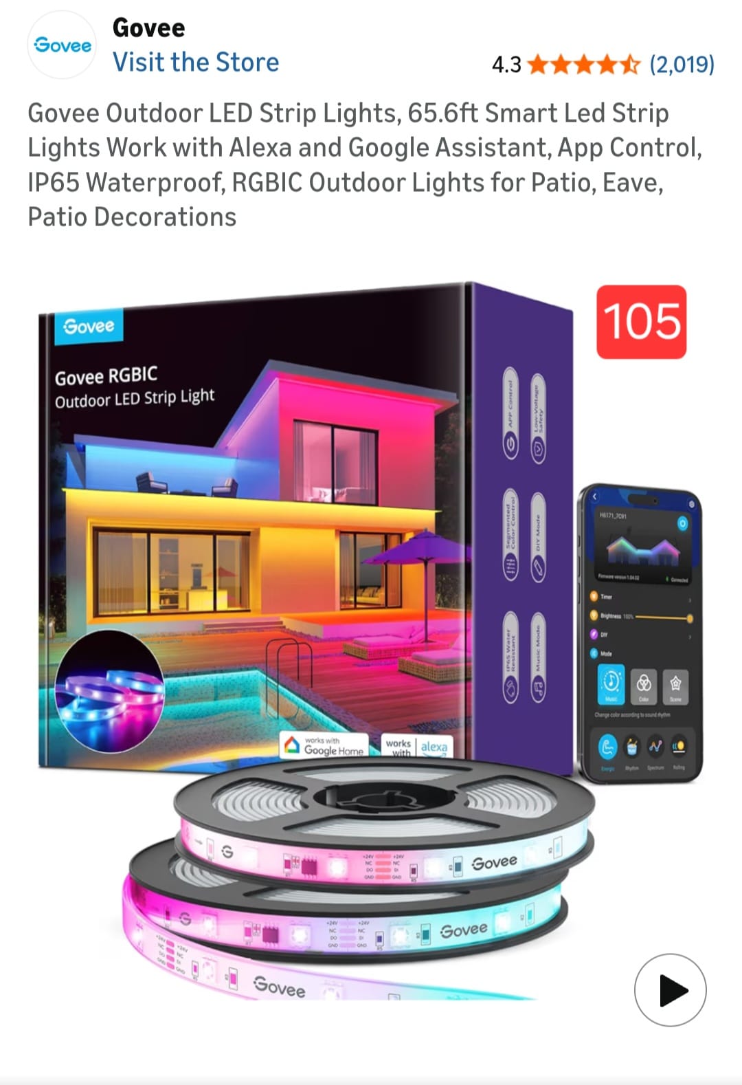 Govee Outdoor LED Strip Lights. 105
