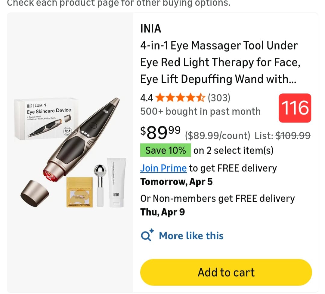 4-in-1 Eye Massager Tool Under Eye Red Light Therapy for Face, Eye Lift Depuffing Wand. 116