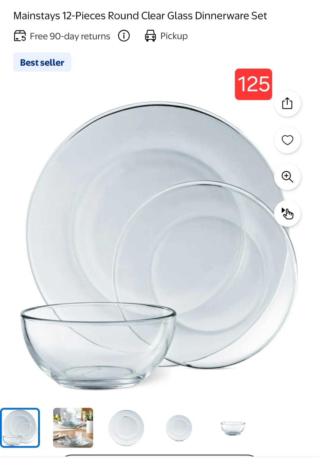 Mainstays 12-Pieces Round Clear Glass Dinnerware Set. 125