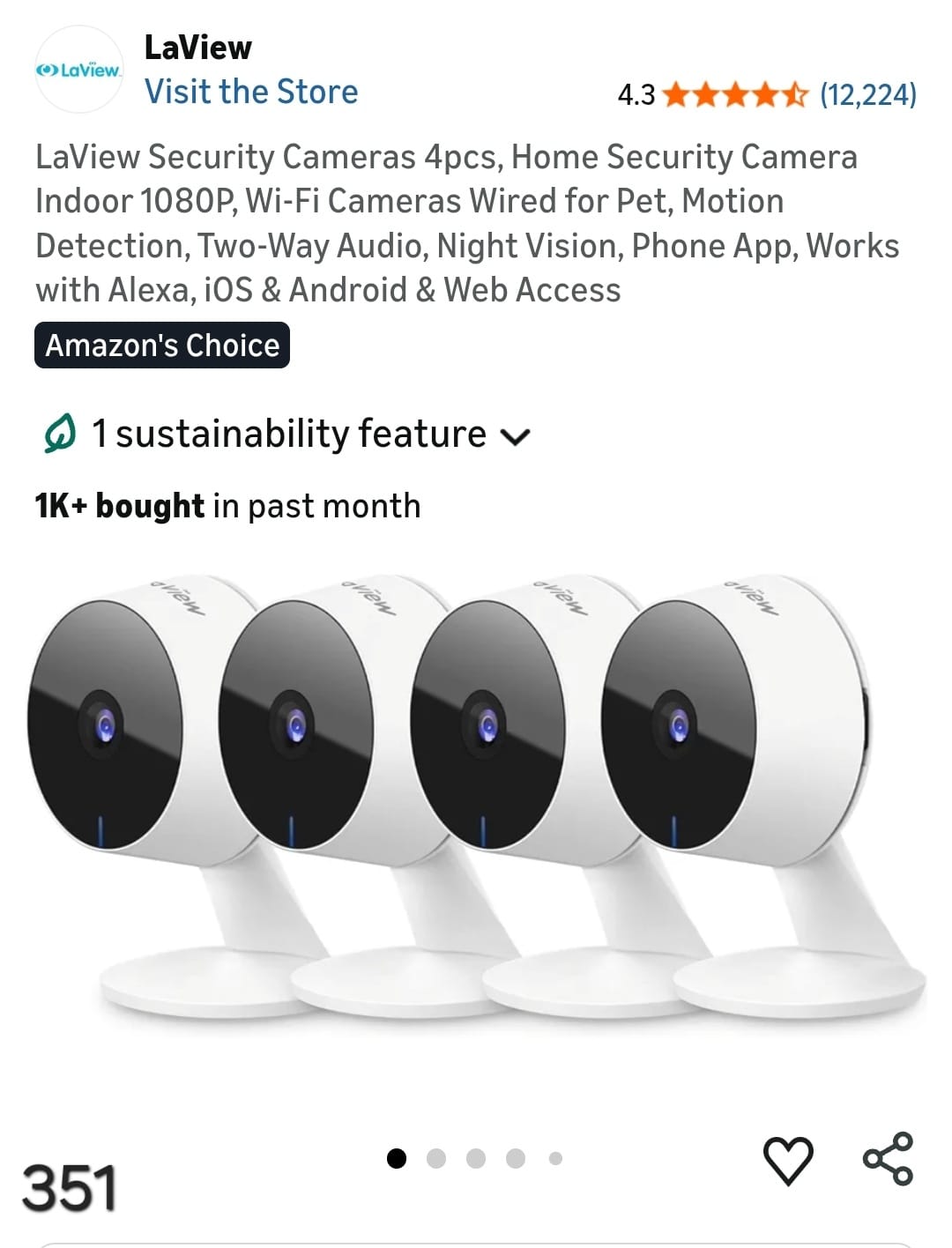 LaView Security Cameras 4pcs, Home Security Camera Indoor 1080P, Wi-Fi Cameras Wired for Pet. Lv351