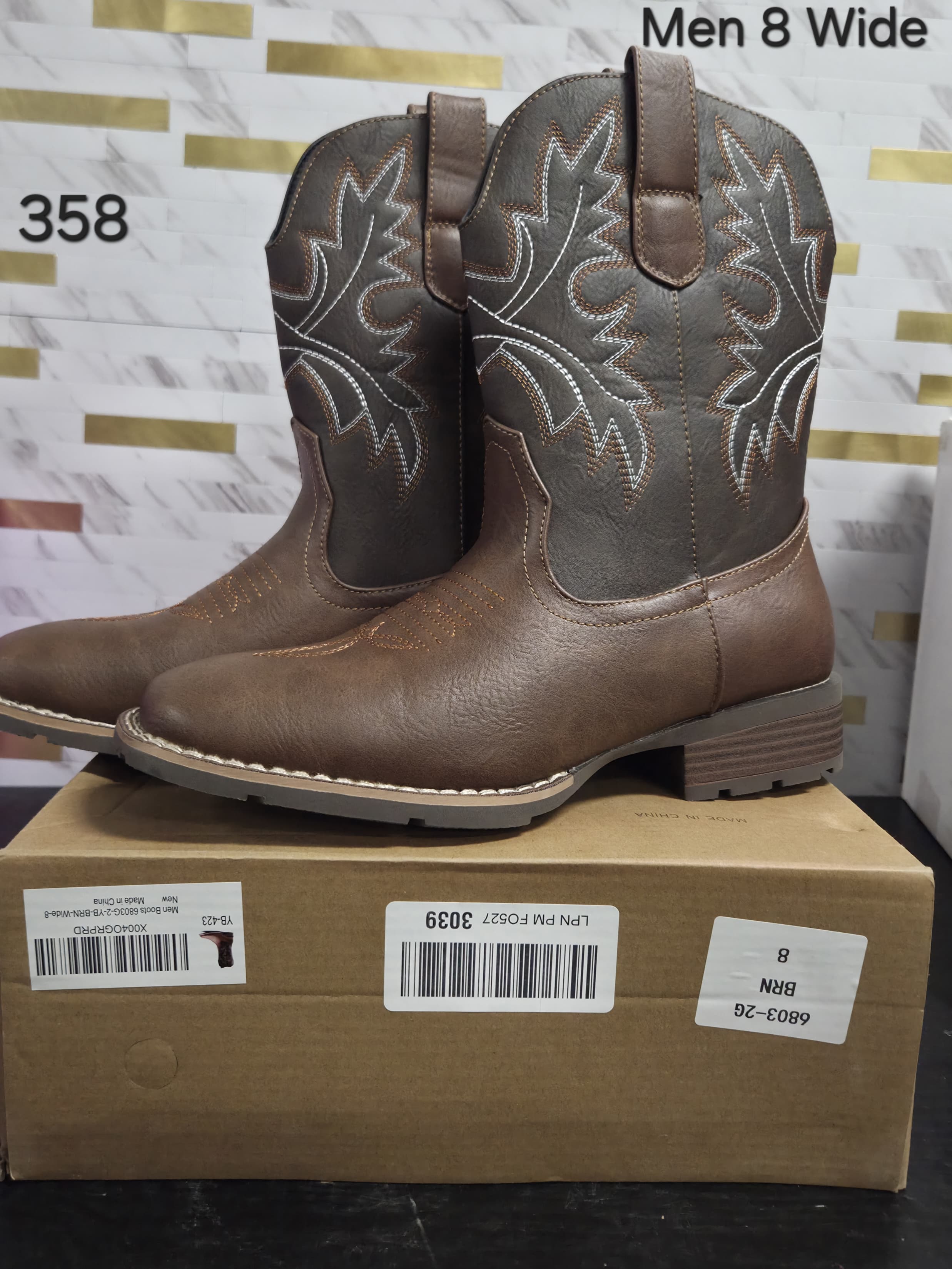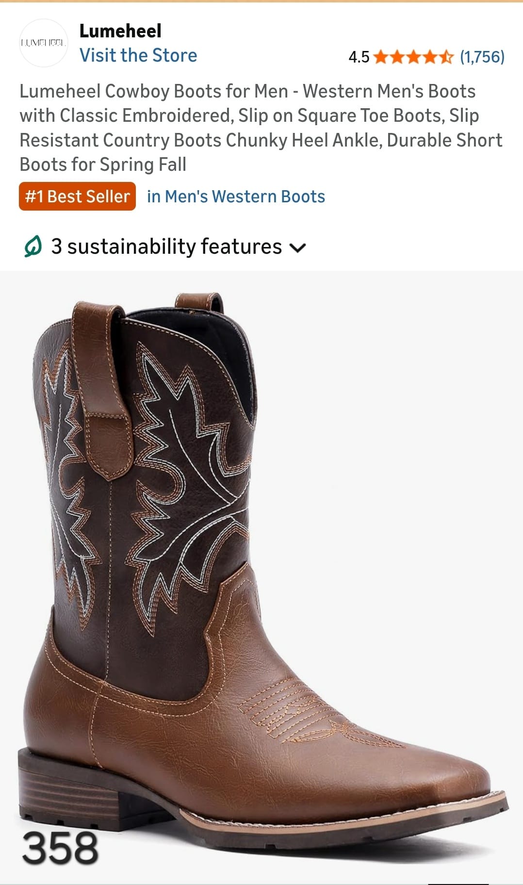 Lumeheel Cowboy Boots for Men - Western Men's Boots with Classic Embroidered, Slip on Square Toe Boots, Slip Resistant Country Boots Chunky Heel Ankle, Durable Short Boots for Spring Fall size 8. Lv358