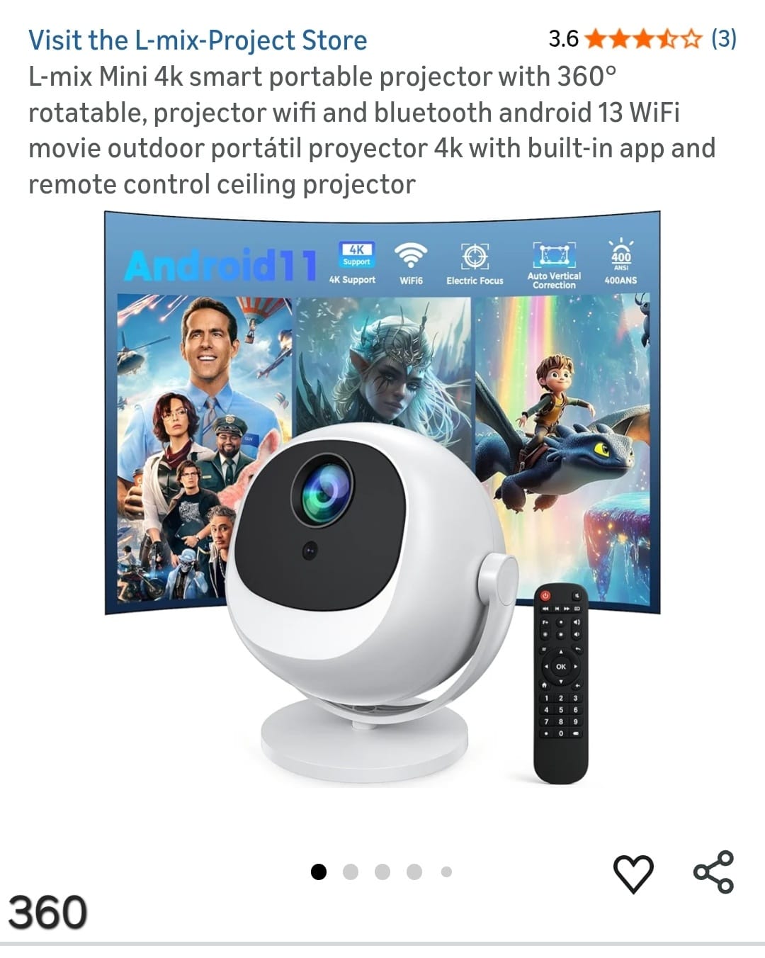 L-mix Mini 4k smart portable projector with 360° rotatable. Lv360