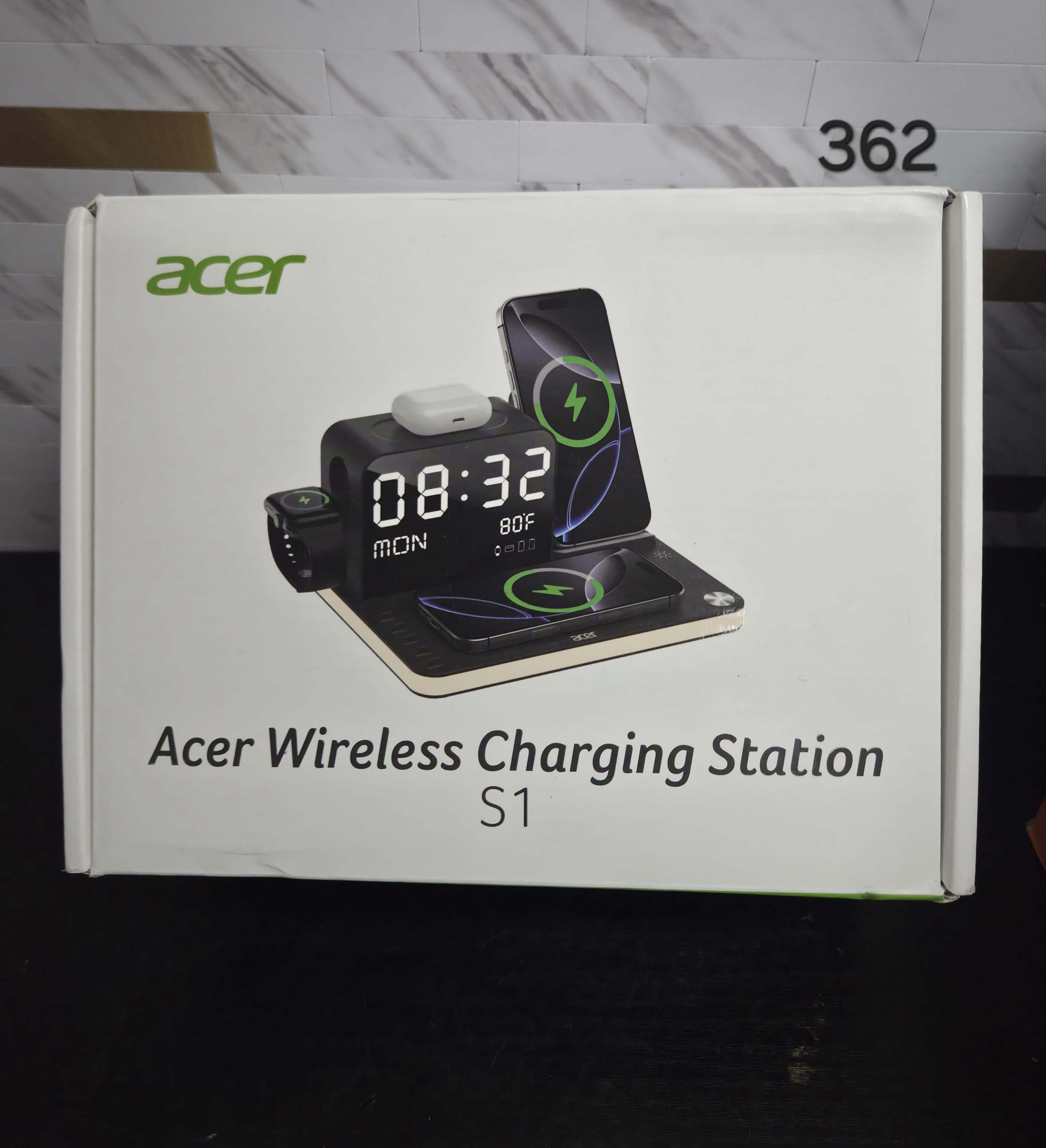 acer 7-in-1 Wireless Charging Station: Charger Stand for Multiple Devices for Apple - iPhone 16 15 14 13 12 Pro Max Apple Watch Airpods, Wireless Charger iPhone Charging Station with Bluetooth TimeSyn. Lv362