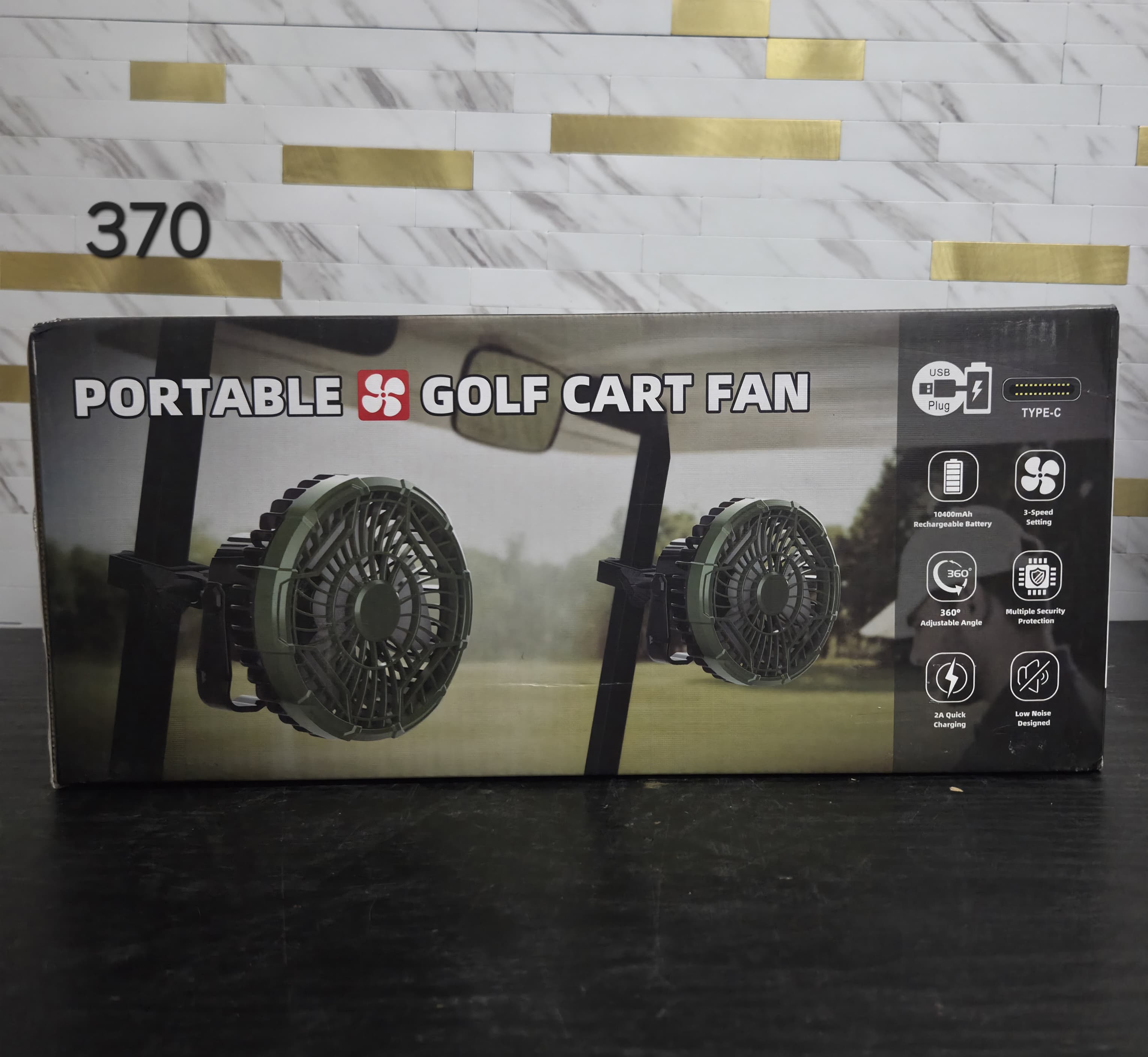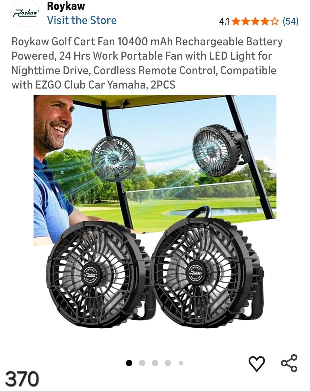 Roykaw Golf Cart Fan 10400 mAh Rechargeable Battery Powered, 24 Hrs Work Portable Fan with LED Light for Nighttime Drive, Cordless Remote Control, Compatible with EZGO Club Car Yamaha, 2PCS. Lv370