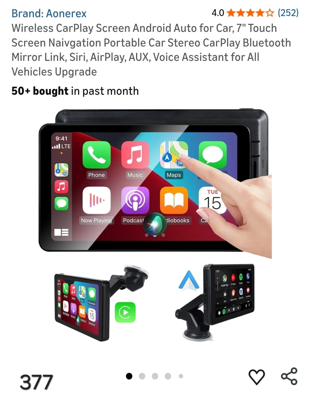 Wireless CarPlay Screen Android Auto for Car, 7" Touch Screen Naivgation Portable Car Stereo CarPlay Bluetooth Mirror Link, Siri, AirPlay, AUX, Voice Assistant for All Vehicles Upgrade. Lv377