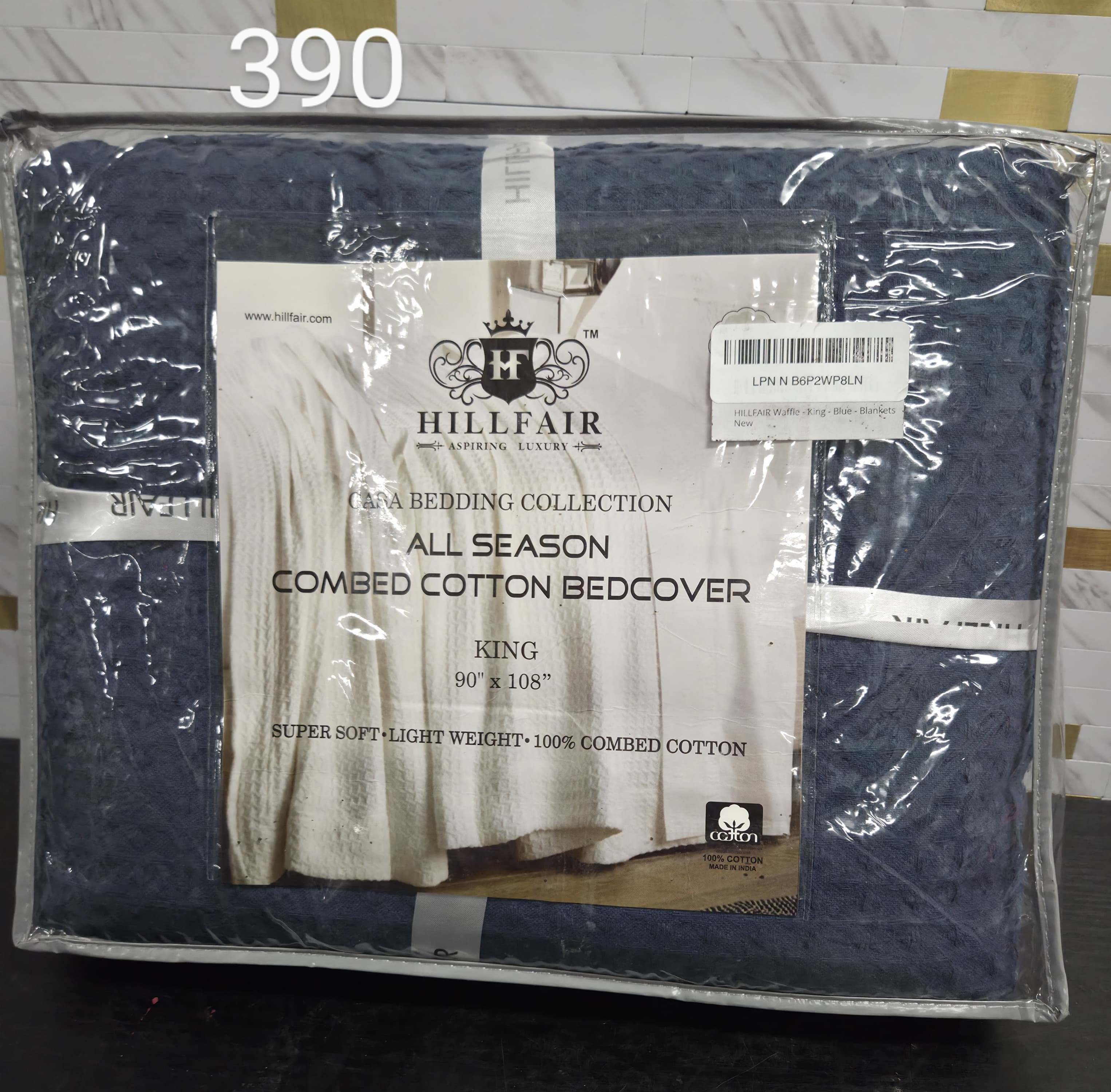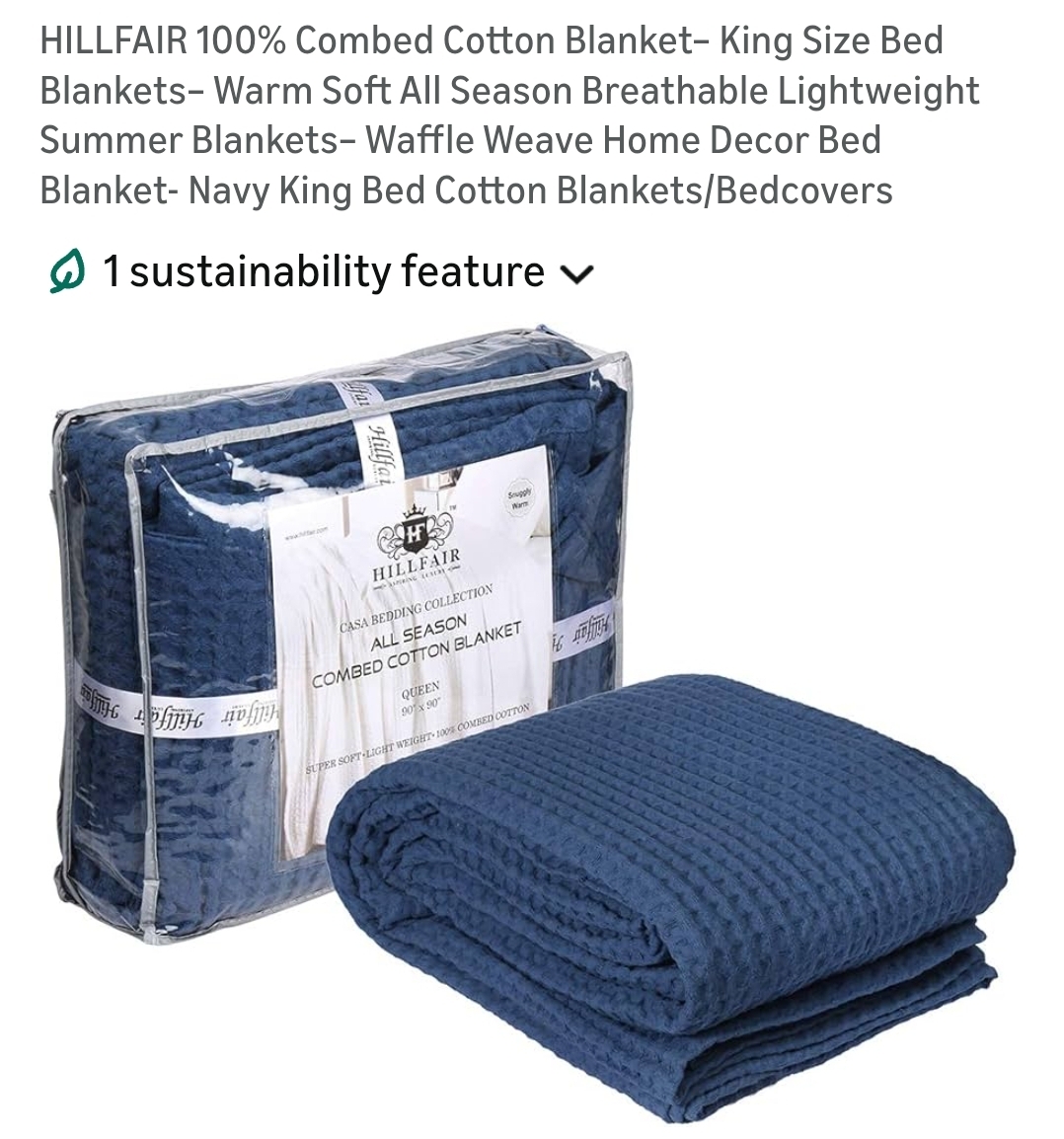HILLFAIR 100% Combed Cotton Blanket- King Size Bed Blankets- Warm Soft All Season Breathable Lightweight Summer Blankets- Waffle Weave Home Decor Bed Blanket- Navy King Bed Cotton Blankets/Bedcovers. Lv390