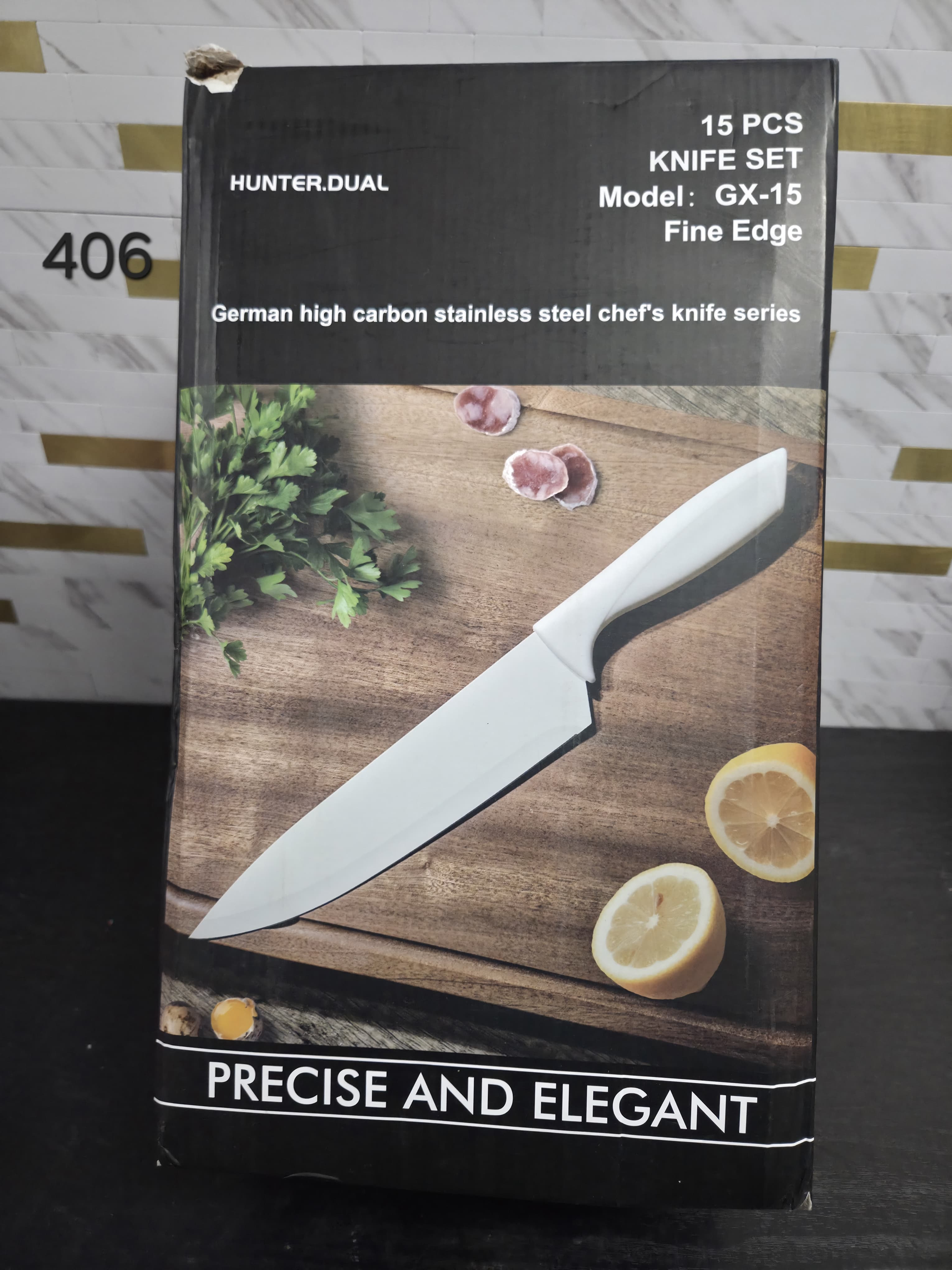 Knife Set with Block and Sharpener 15 Piece Knives Set with Ceramic Coating German High Carbon Stainless Steel Knives Sharp Blade Dishwasher Safe. Lv406