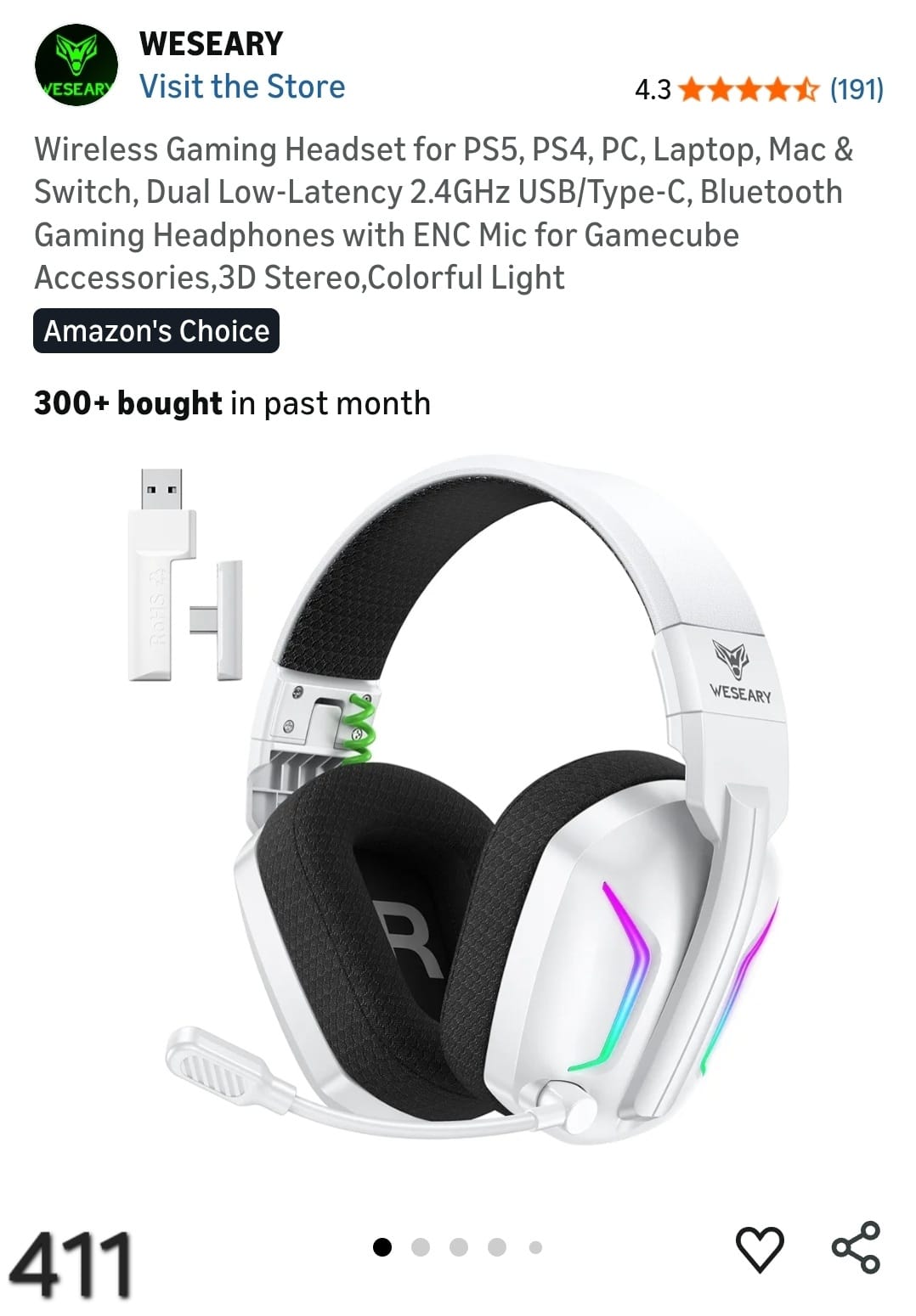 Wireless Gaming Headset for PS5, PS4, PC, Laptop, Mac & Switch. Lv411