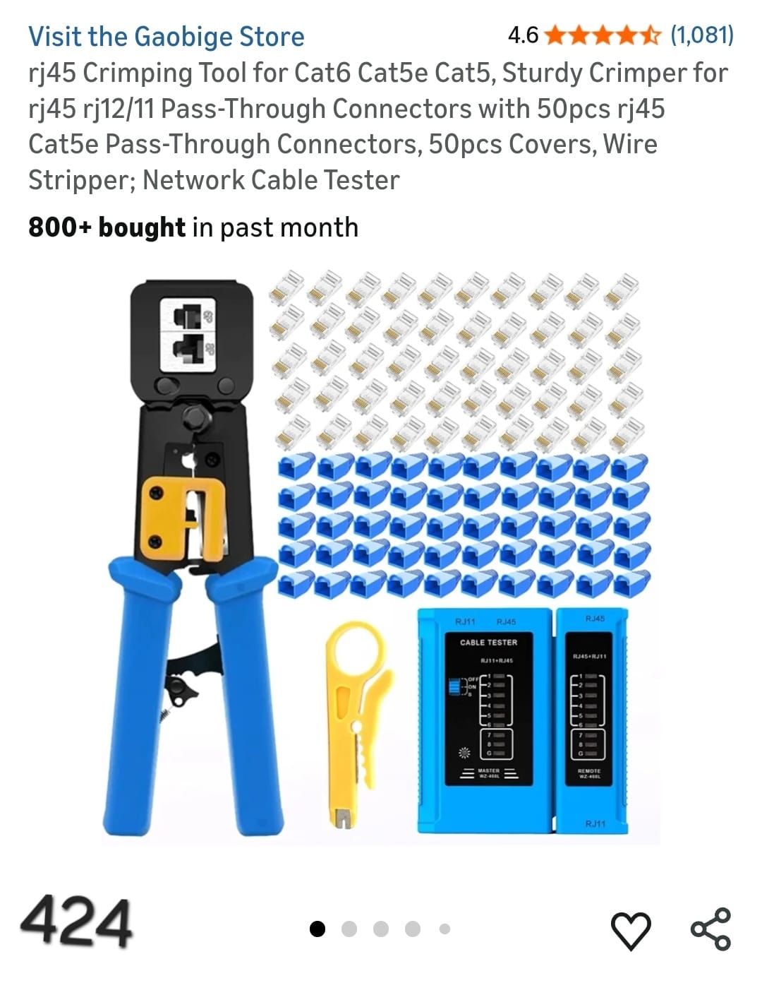rj45 Crimping Tool for Cat6 Cat5e Cat5, Sturdy Crimper for rj45 rj12/11 Pass-Through Connectors with 50pcs rj45 Cat5e Pass-Through Connectors, 50pcs Covers, Wire Stripper; Network Cable Tester. Lv424