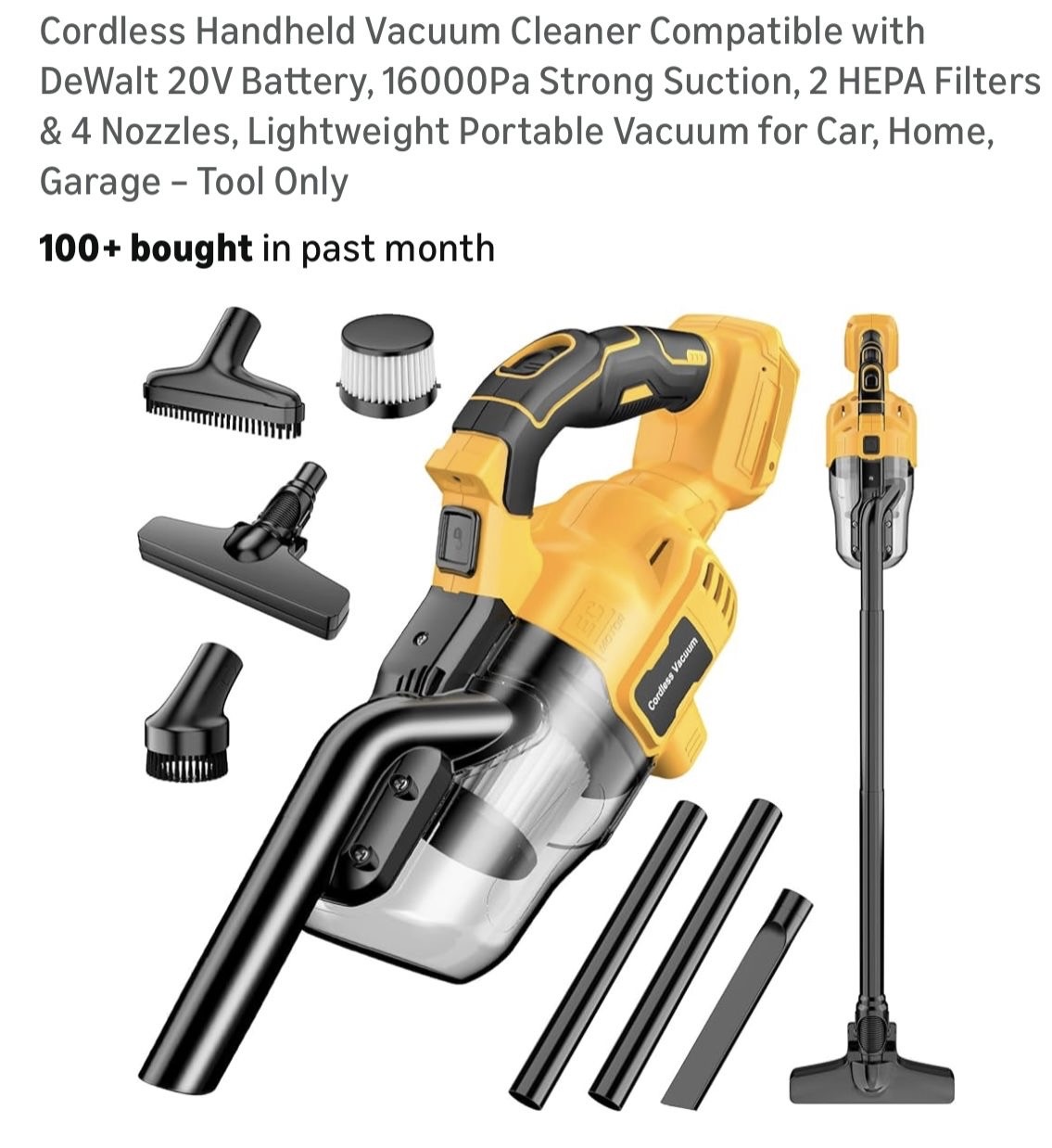 Cordless Handheld Vacuum Cleaner Compatible with DeWalt 20V Battery #J7