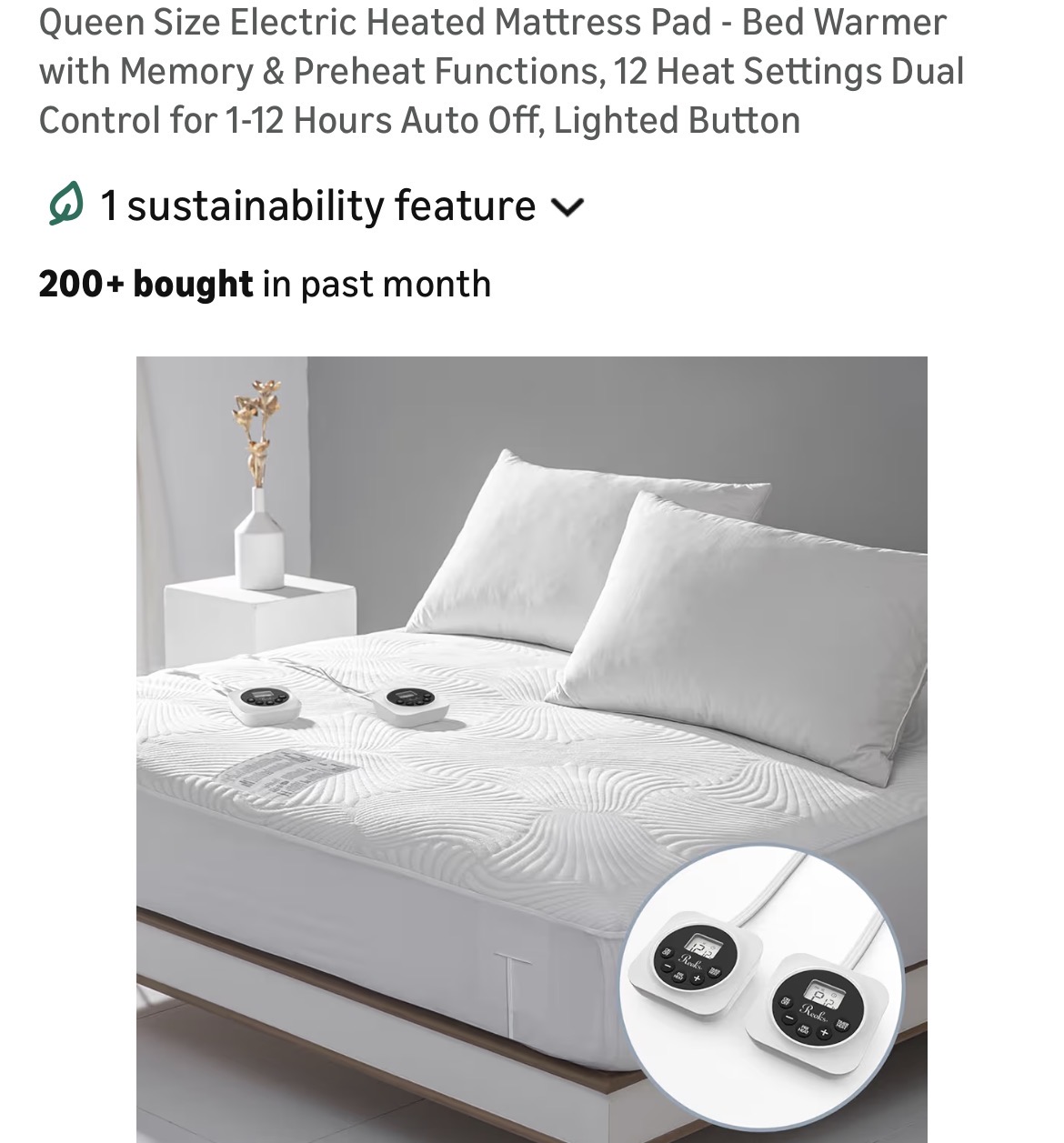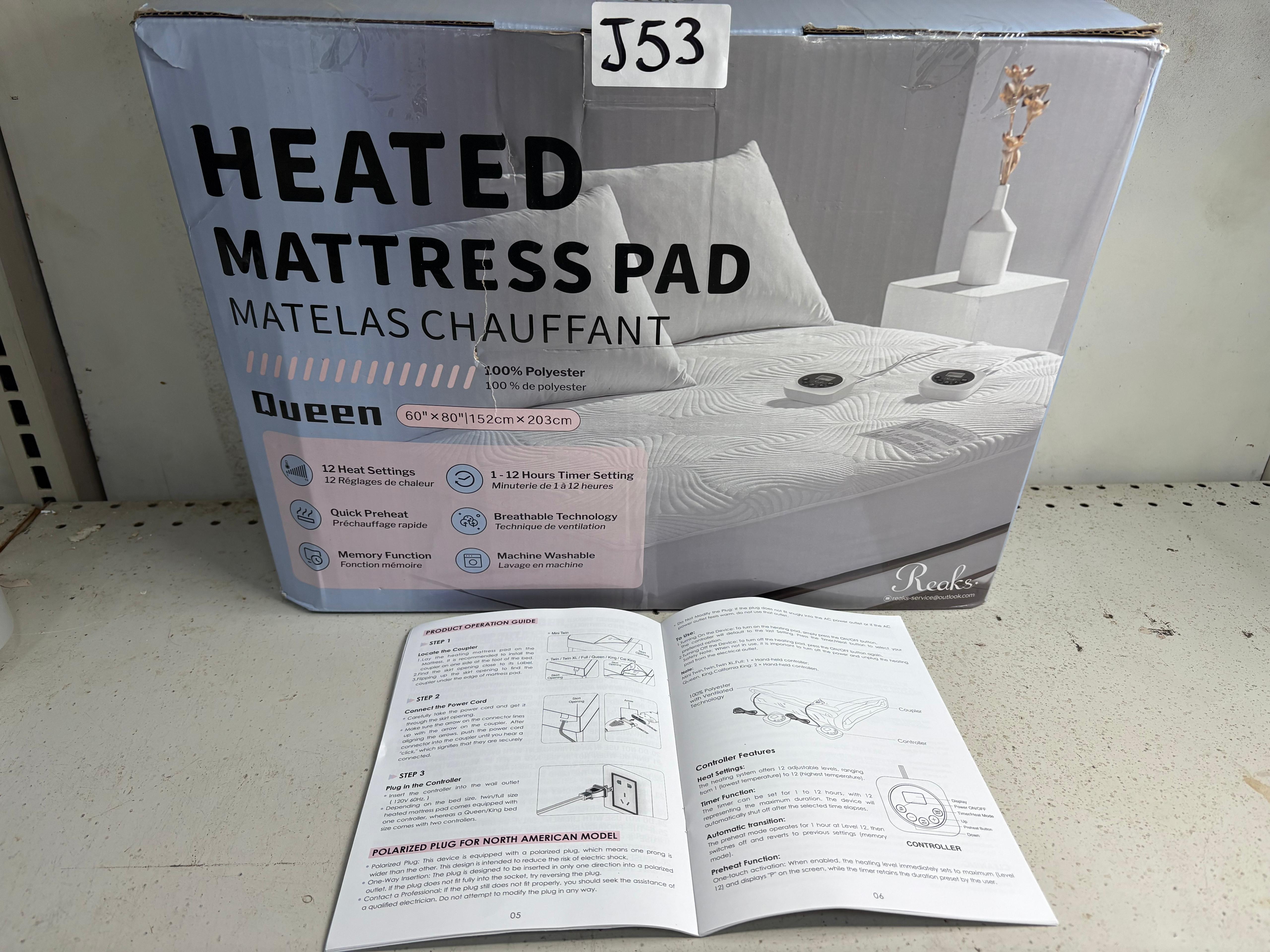 Queen Size Electric Heated Mattress Pad - Bed Warmer with Memory & Preheat Functions #J53