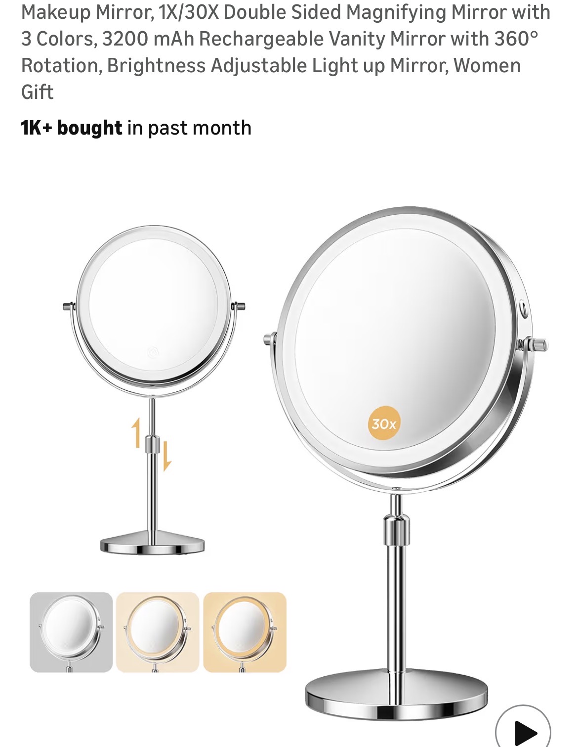 Makeup Mirror, 1X/30X Double Sided Magnifying Mirror with 3 Colors #D64