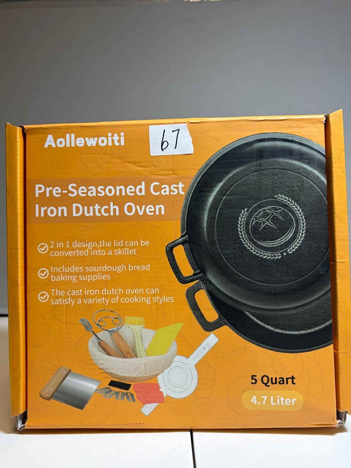 Pre-Seasoned Cast Iron Dutch Oven Pot with Skillet Lid #D67