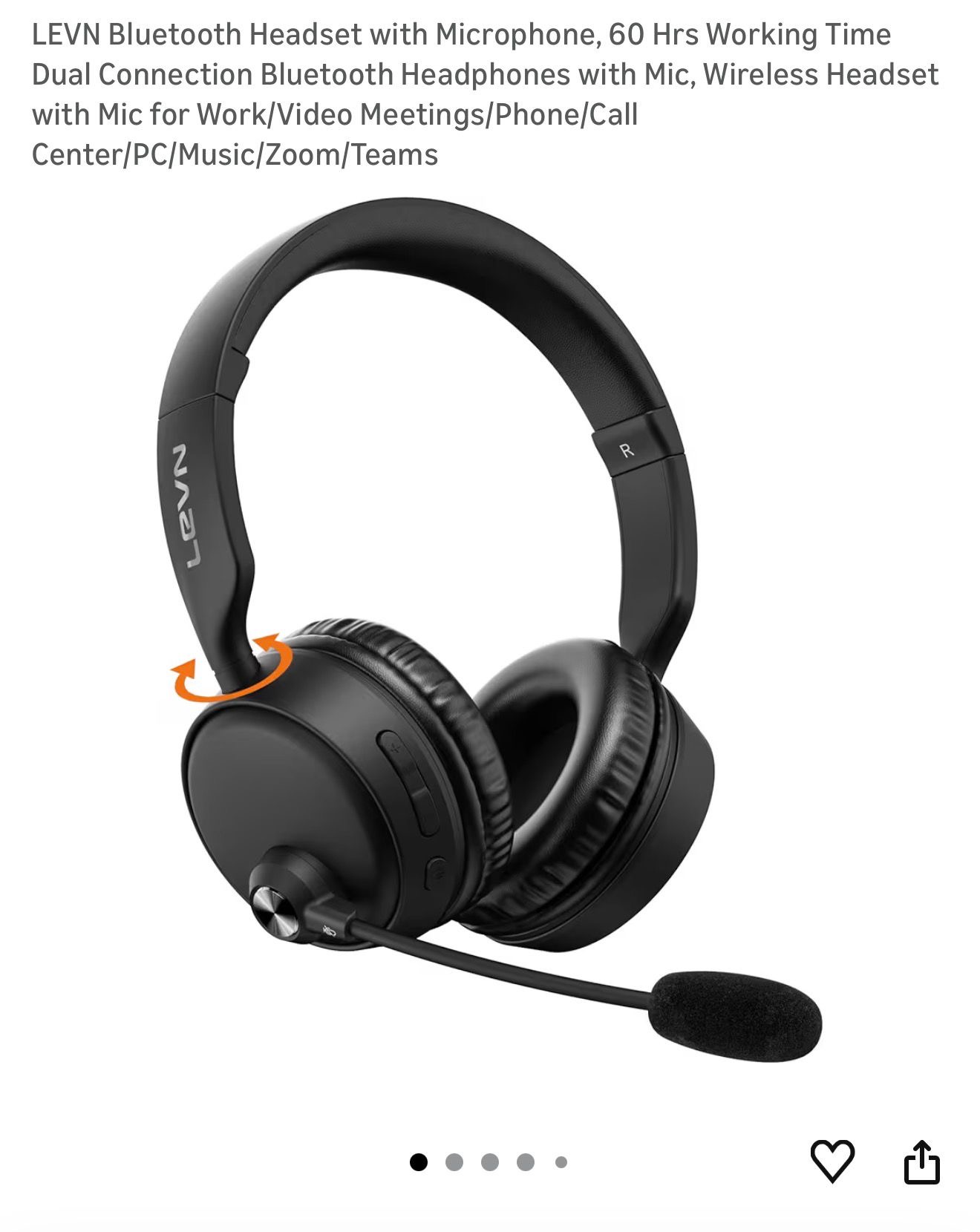LEVN Bluetooth Headset with Microphone, 60 Hrs Working Time Dual Connection Bluetooth Headphones with Mic, Wireless Headset with Mic for Work/Video Meetings/Phone/Call Center/PC/Music/Zoom/Teams(A180)