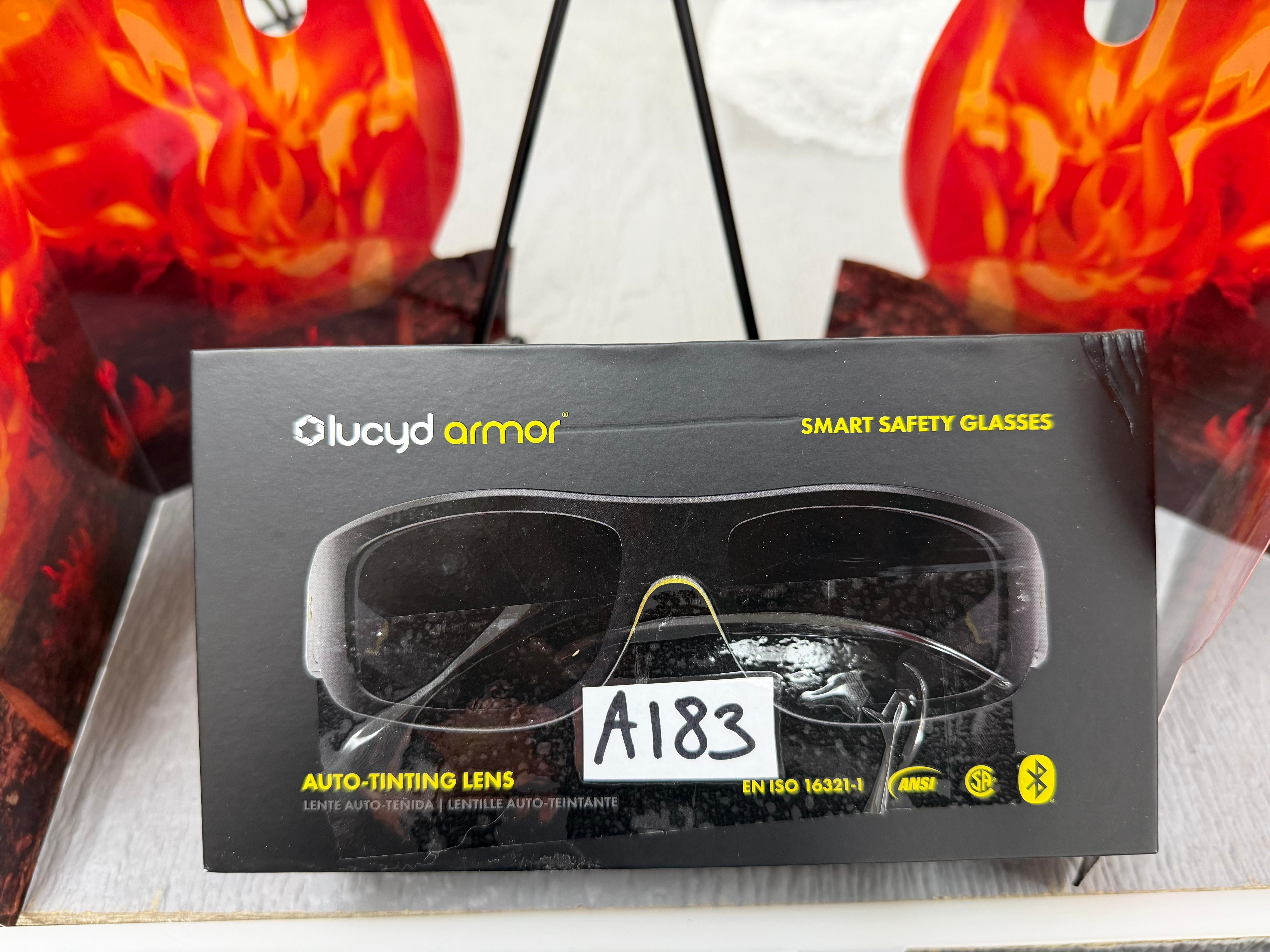 Lucyd Armor Smart Safety Glasses feature a lightweight TR90 frame, Bluetooth 5.2 connectivity for hands-free calls and audio streaming, and high-impact resistance.( A183)