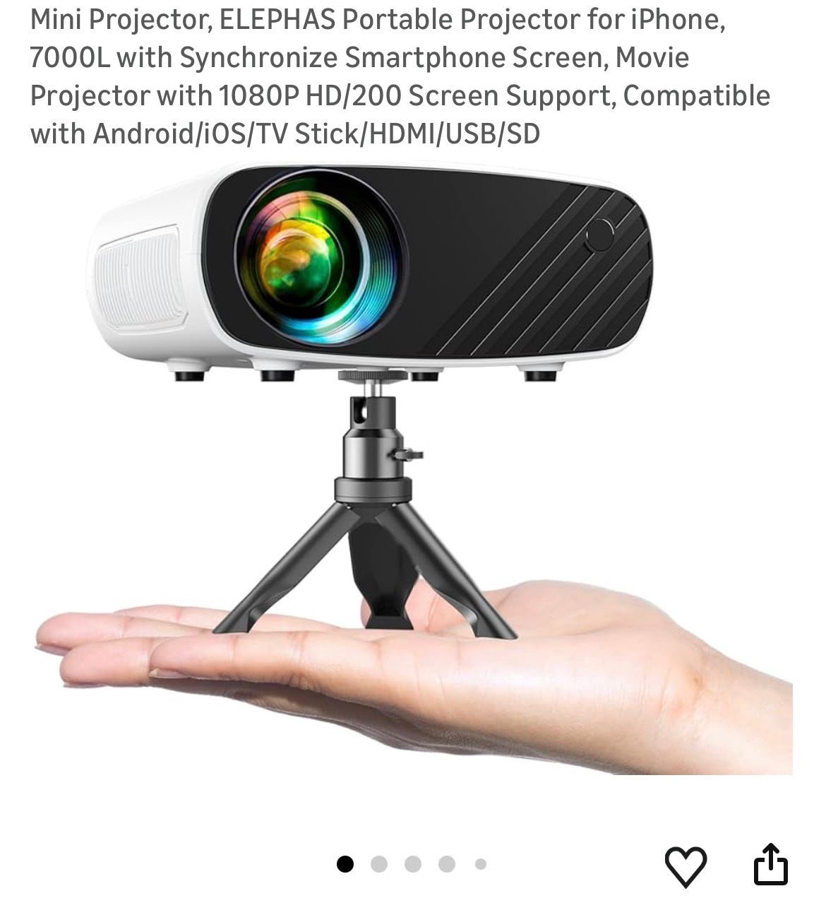 Mini Projector, ELEPHAS Portable Projector for iPhone, 7000L with Synchronize Smartphone Screen, Movie Projector with 1080P HD/200 Screen Support, Compatible with Android/iOS/TV Stick/HDMI/USB/SD (A115)