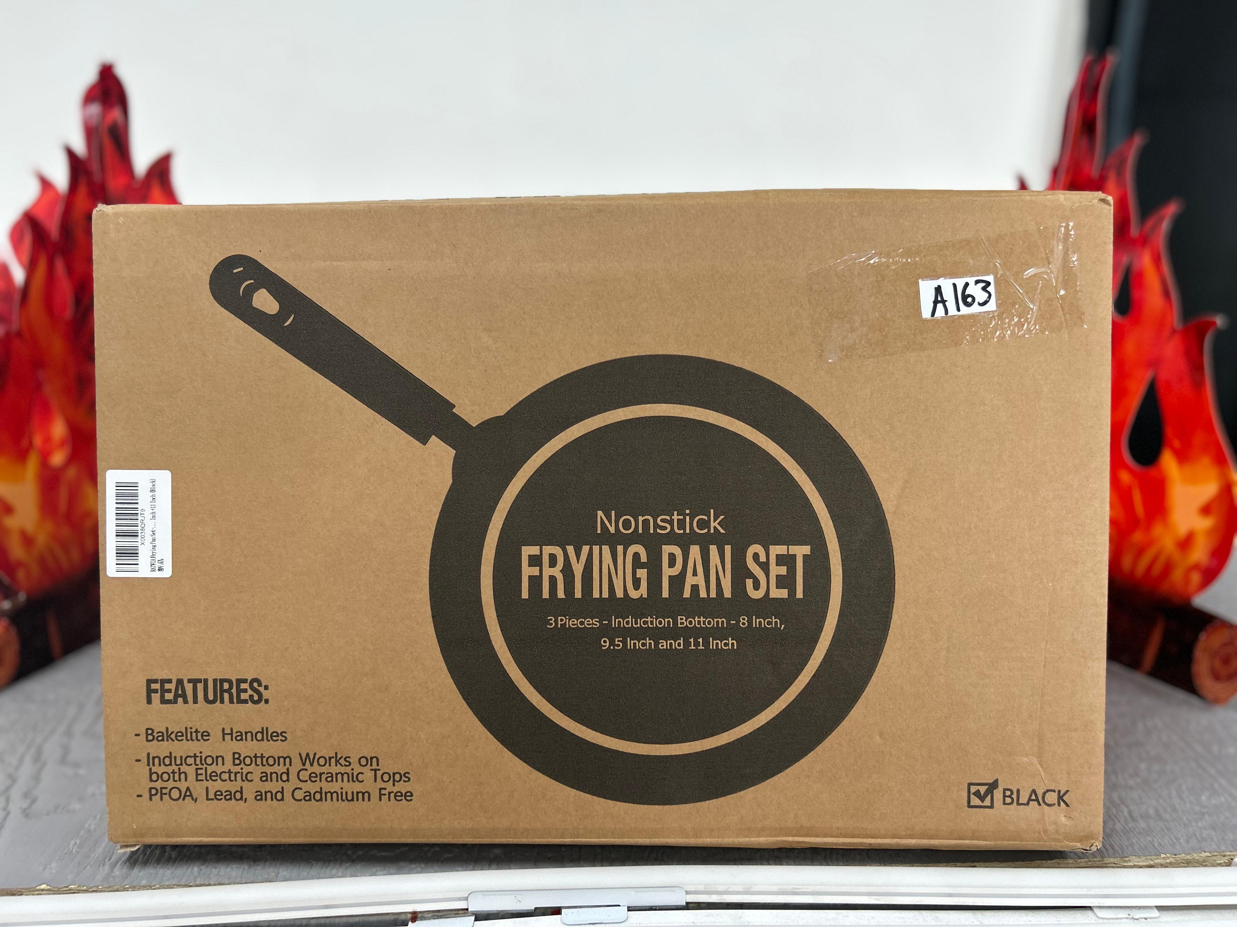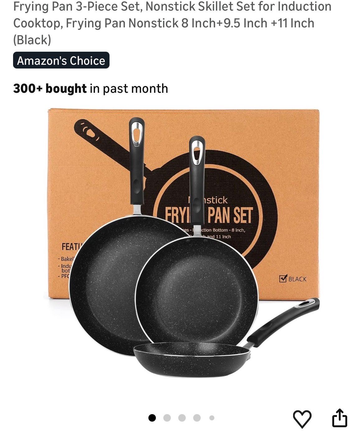 Frying Pan 3-Piece Set, Nonstick Skillet Set for Induction Cooktop, Frying Pan Nonstick 8 Inch+9.5 Inch +11 Inch (Black) (A163)