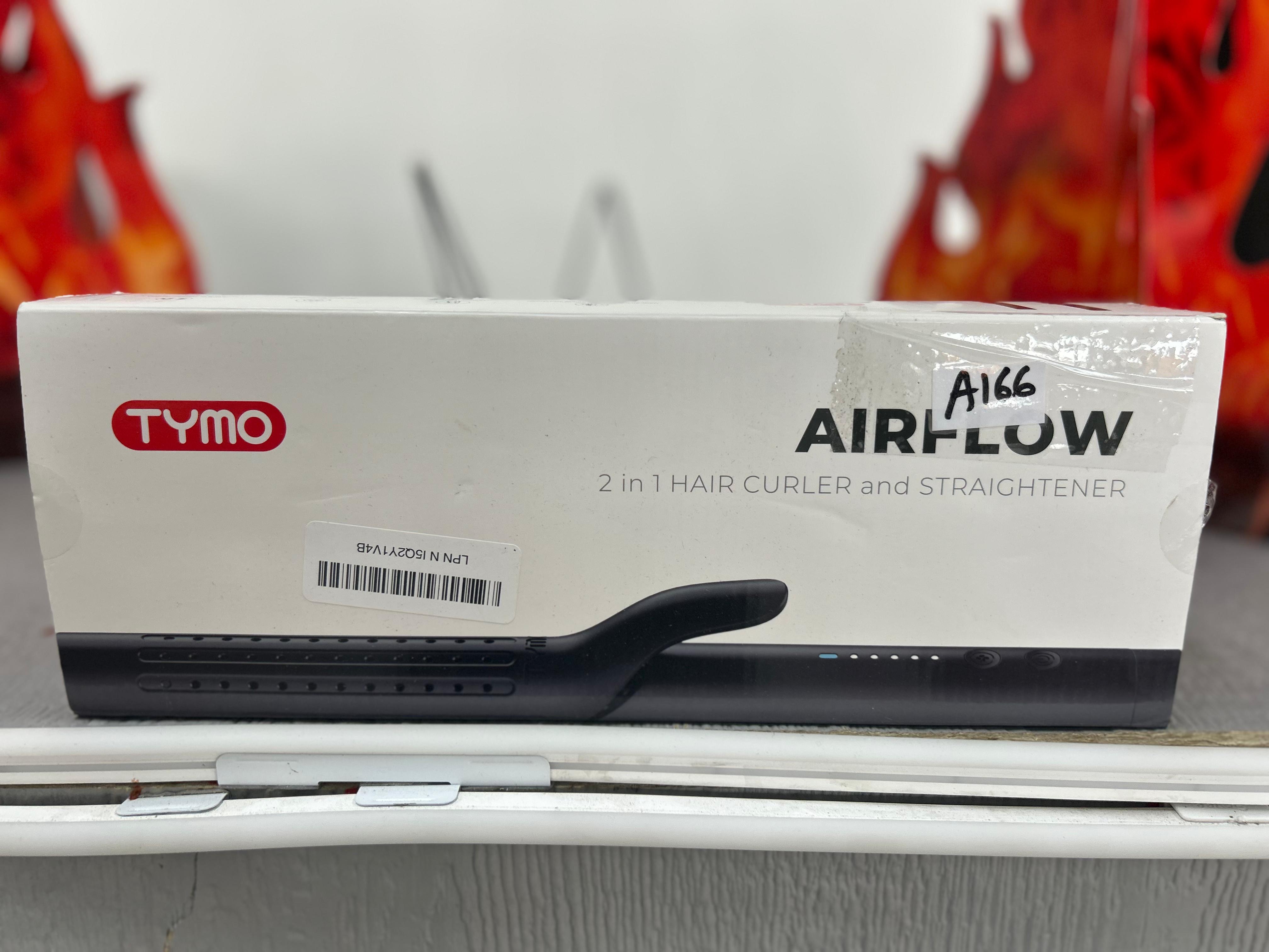 TYMO Airflow 2.0 is a 2-in-1 hair straightener and curling iron featuring 360° airflow technology to cool and set curls instantly. (A166)