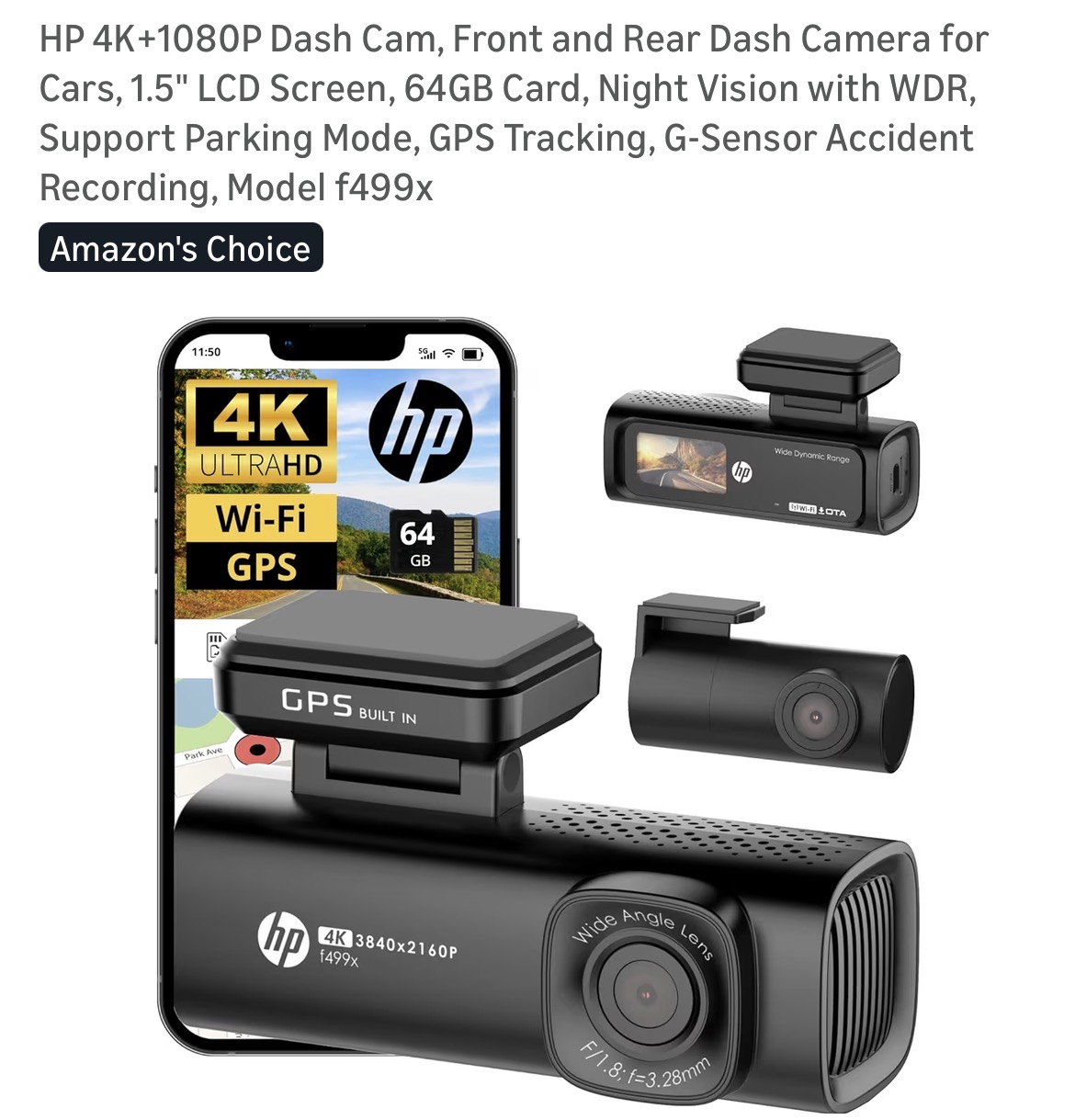 HP 4K+1080P Dash Cam #D77