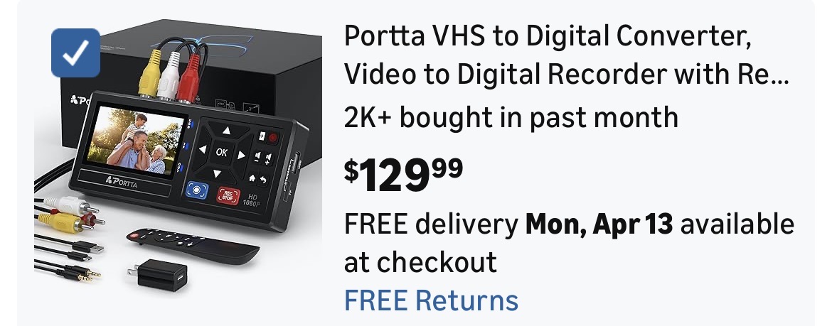 Portta VHS to Digital Converter, Video to Digital Recorder with Remote #D72