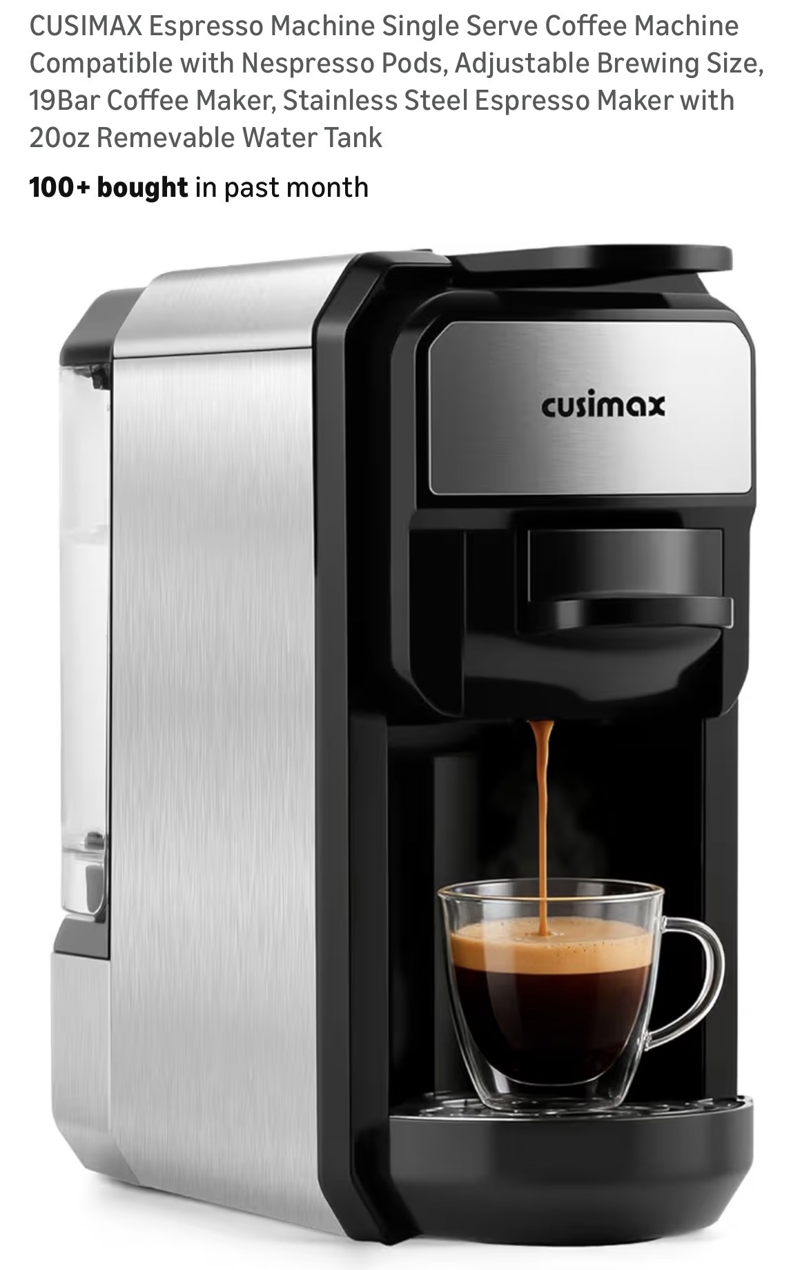 CUSIMAX Espresso Machine Single Serve Coffee Machine Compatible with Nespresso Pods #K6