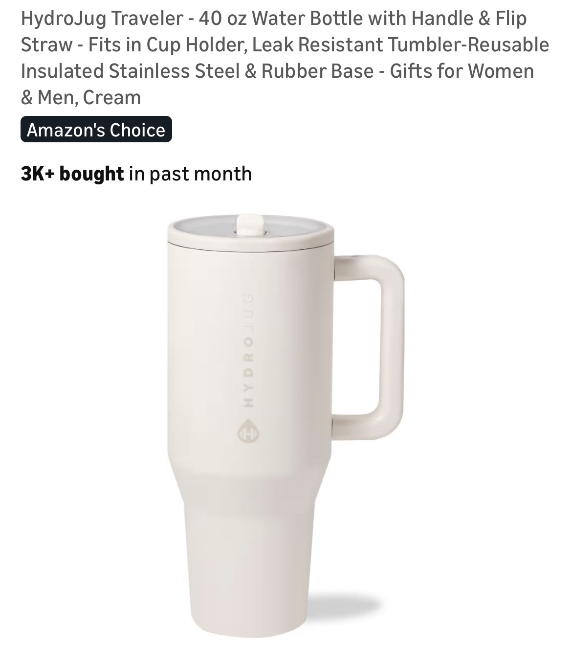 HydroJug Traveler - 40 oz Water Bottle with Handle & Flip Straw #K31