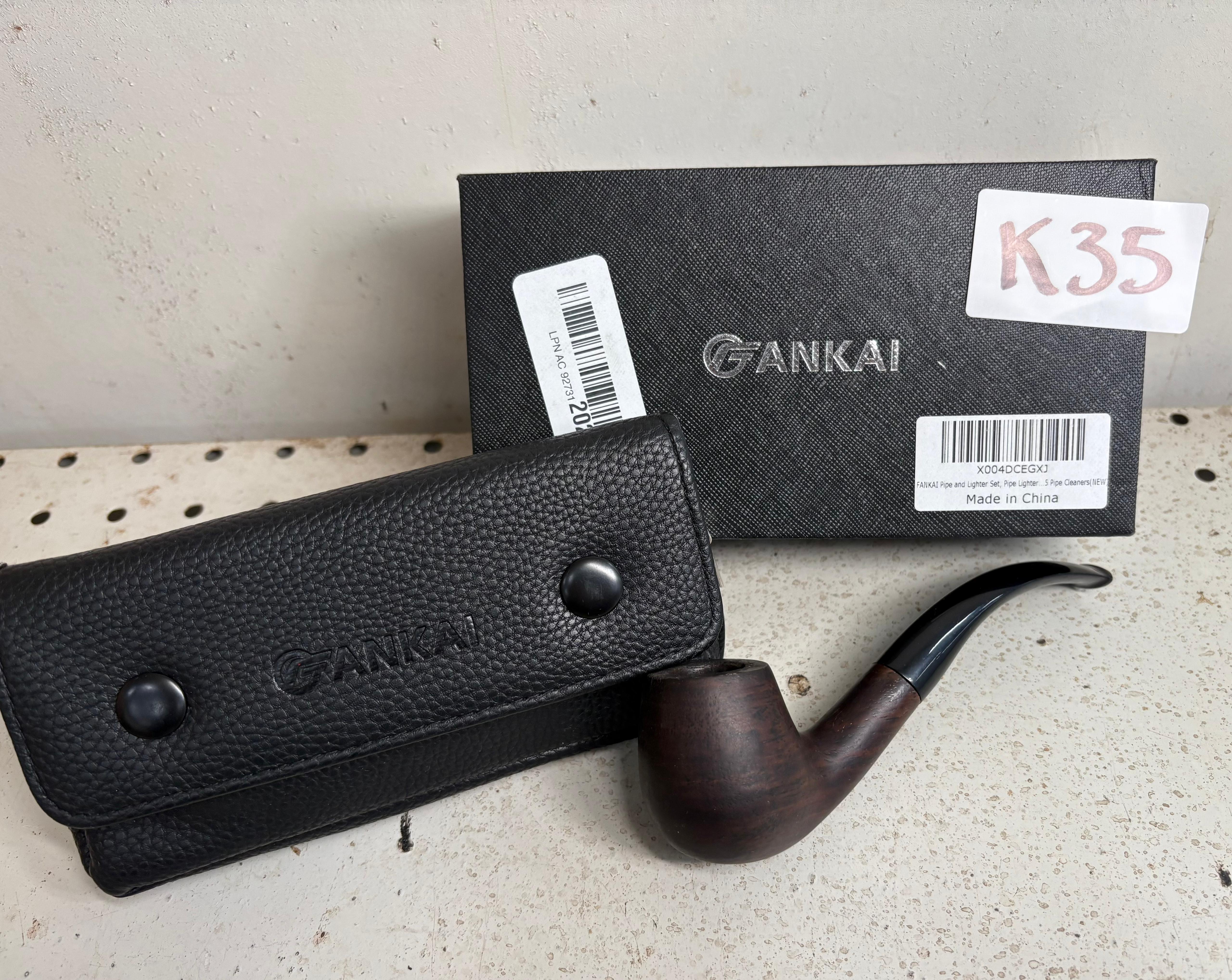 Pipe Set, Pipe Lighter, Pipe Pouch, Wood Pipe #K35
