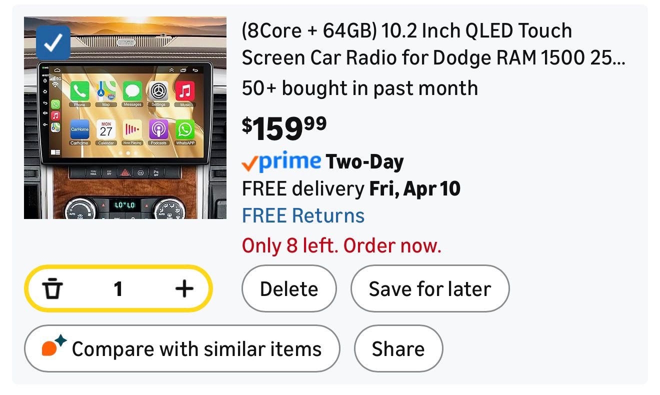8Core + 64GB) 10.2 Inch QLED Touch Screen Car Radio designed for Dodge RAM trucks. (A221)