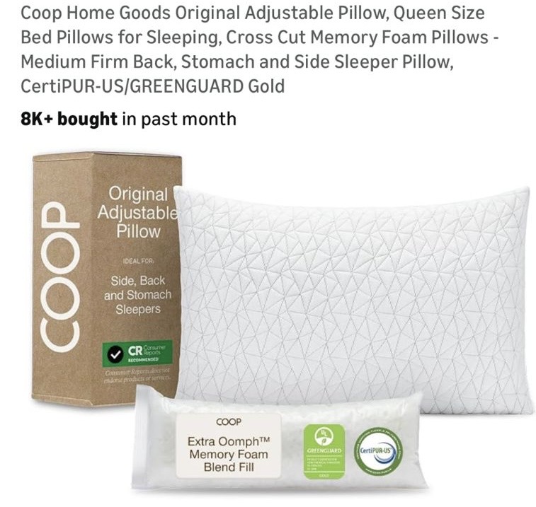 Coop Home Goods Original Adjustable Pillow, Queen Size #K41